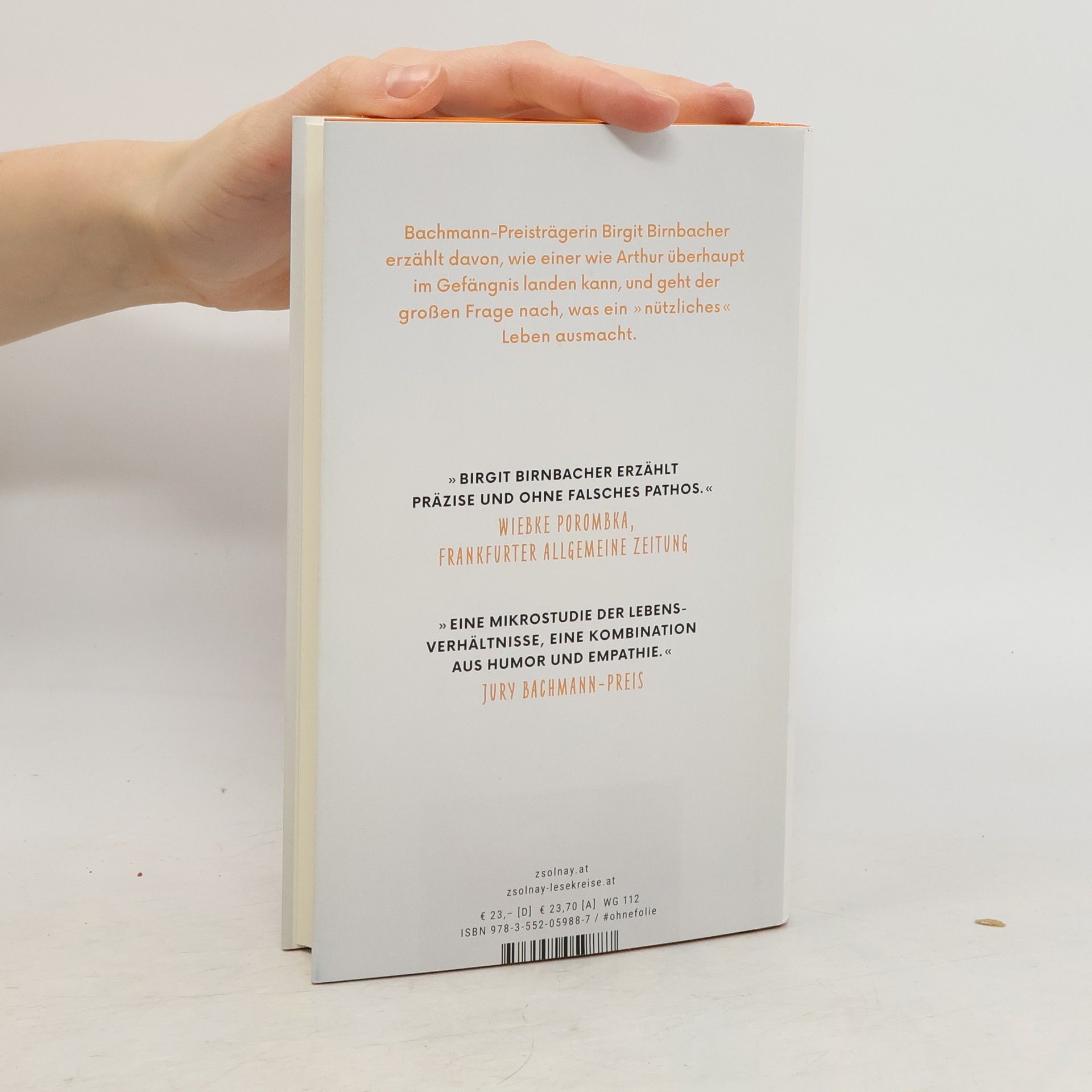 Der Roman der Bachmann-Preisträgerin von 2019: Humorvoll und empathisch erzählt Birgit Birnbacher vom jungen Arthur, der nach seiner Zeit im Gefängnis nur schwer eine neue Chance bekommt. Arthur, 22, still und intelligent, hat 26 Monate im Gefängnis verbracht. Endlich wieder in Freiheit stellt er fest, dass er so leicht keine neue Chance bekommt. Ohne die passenden Papiere und Zeugnisse lässt man ihn nicht zurück ins richtige Leben. Gemeinsam mit seinem unkonventionellen Therapeuten Börd und seiner glamourösen Ersatzmutter Grazetta schmiedet er deshalb einen ausgefuchsten Plan. Eine kleine Lüge, die die große Freiheit bringen könnte ... Humorvoll und empathisch erzählt Bachmann-Preisträgerin Birgit Birnbacher davon, wie einer wie Arthur überhaupt im Gefängnis landen kann, und geht der großen Frage nach, was ein „nützliches“ Leben ausmacht.