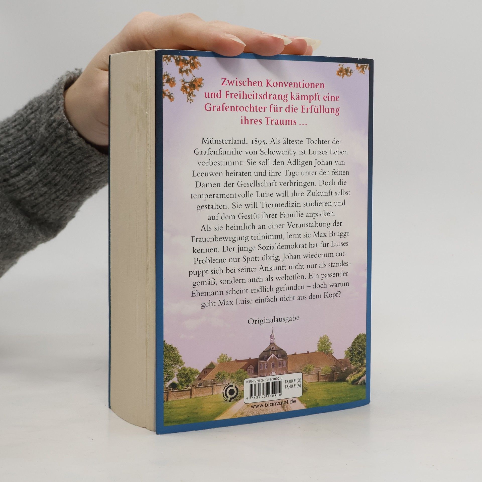 Münsterland 1895: Zerrissen zwischen gesellschaftlichen Konventionen und dem Drang nach Freiheit kämpft eine junge Grafentochter für die Erfüllung ihres Traums … Münsterland, 1895. Als älteste Tochter der Grafenfamilie von Scheweney ist Luises Leben vorbestimmt: Sie soll den Adligen Johan van Leeuwen heiraten und ihre Tage unter den feinen Damen der Gesellschaft verbringen. Doch die temperamentvolle Luise will ihre Zukunft selbst gestalten. Sie will Tiermedizin studieren und auf dem Gestüt ihrer Familie anpacken. Als sie heimlich an einer Veranstaltung der Frauenbewegung teilnimmt, lernt sie Max Brugge kennen. Der junge Sozialdemokrat hat für Luises Probleme nur Spott übrig, Johan wiederum entpuppt sich bei seiner Ankunft nicht nur als standesgemäß, sondern auch als weltoffen. Ein passender Ehemann scheint endlich gefunden – doch warum geht Max Luise einfach nicht aus dem Kopf? Die große Münsterland-Saga von Lotte Grünewald: Band 1: Gut Friesenhain – Zwischen Traum und Freiheit Band 2: Gut Friesenhain – Zwischen Hoffnung und Vernunft Band 3: Gut Friesenhain – Zwischen Liebe und Skandal