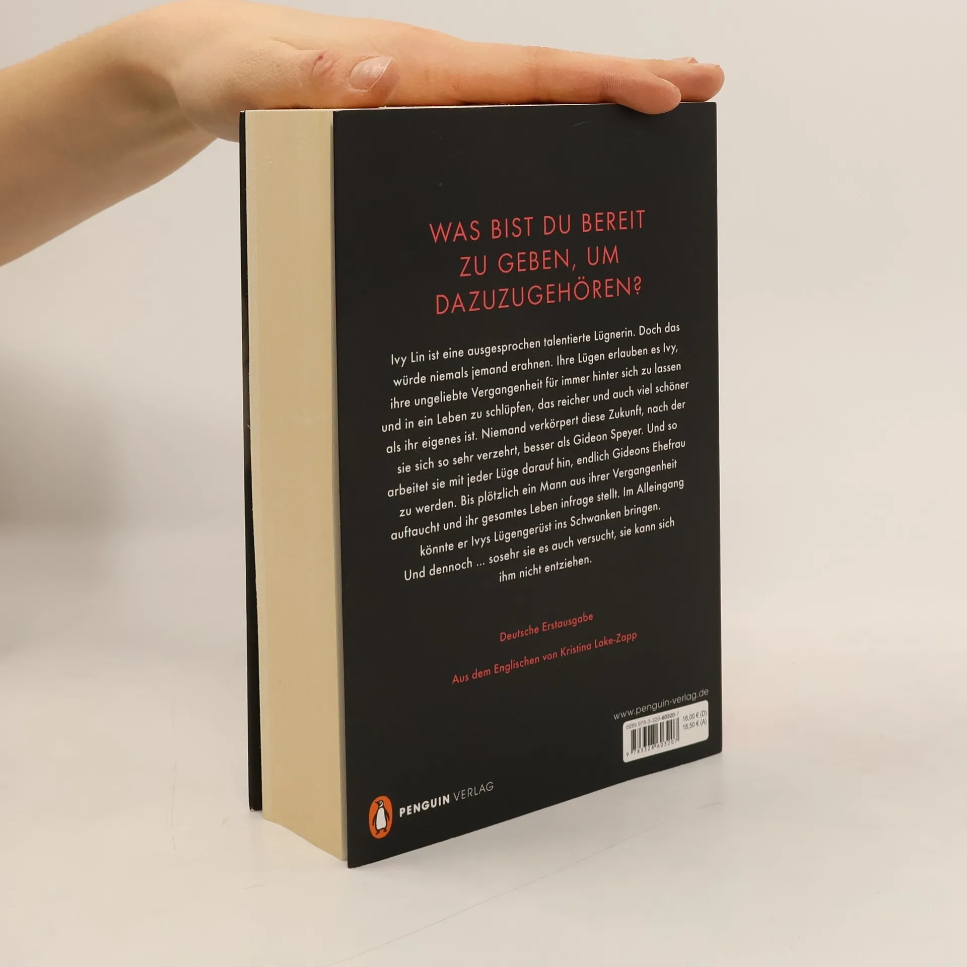 Was bist du bereit zu geben, um dazuzugehören? Ivy Lin ist eine ausgesprochen talentierte Lügnerin. Doch das würde niemals jemand erahnen. Ihre Lügen erlauben es Ivy, ihre ungeliebte Vergangenheit für immer hinter sich zu lassen und in ein Leben zu schlüpfen, das reicher und auch viel schöner als ihr eigenes ist. Niemand verkörpert diese Zukunft, nach der sie sich so sehr verzehrt, besser als Gideon Speyer. Und so arbeitet Ivy mit jeder Lüge darauf hin, endlich Gideons Ehefrau zu werden. Bis plötzlich ein Mann aus ihrer Vergangenheit auftaucht und ihr gesamtes Leben infrage stellt. Im Alleingang könnte er Ivys Lügengerüst ins Schwanken bringen. Dennoch kann sich Ivy ihm nicht entziehen.Das Portrait einer Frau, deren Ehrgeiz tödlich ist. Messerscharf beobachtet, emotional mitreißend.