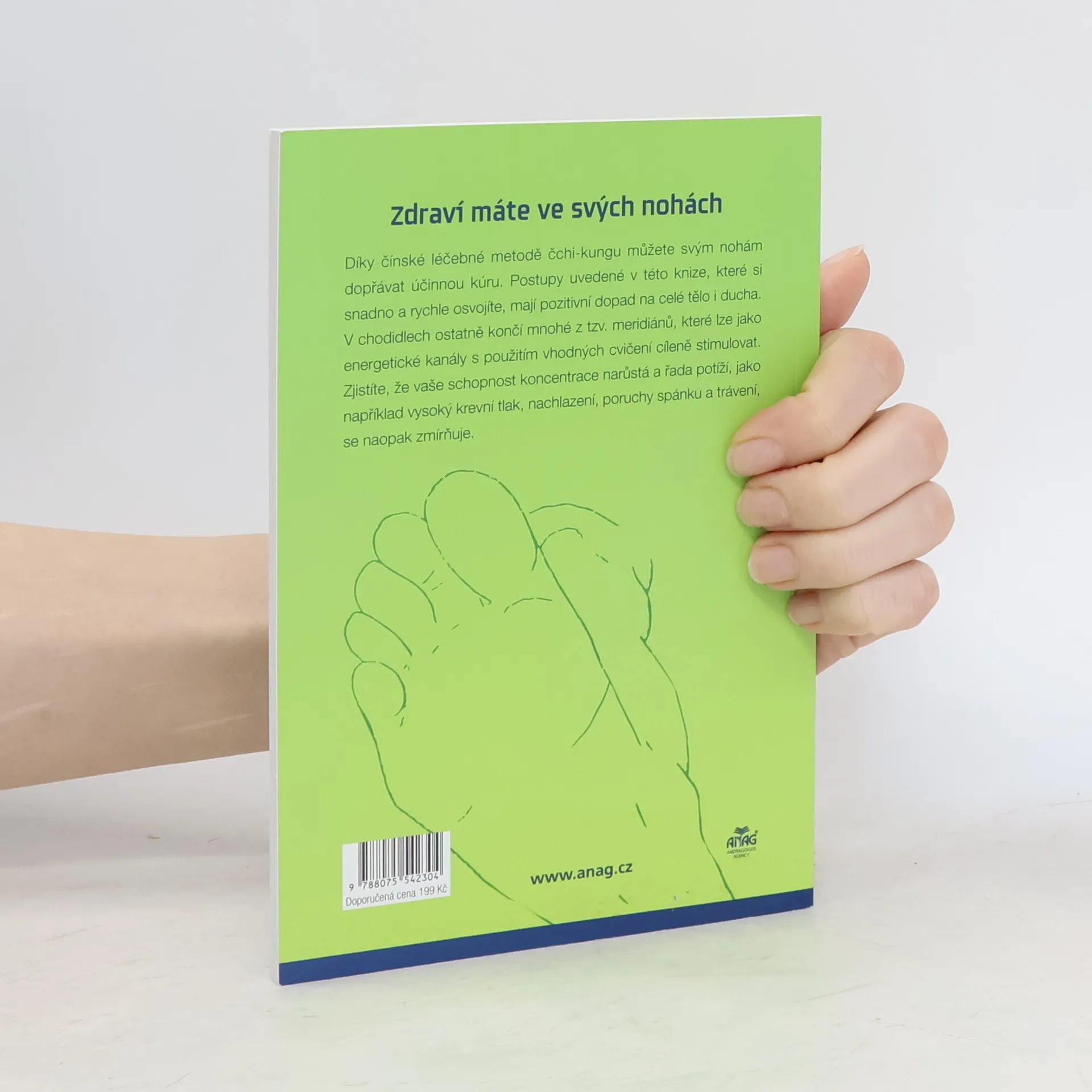 Jednoduchá a rychlá léčba nohou, z níž těží celé tělo a mysl Díky čínské léčebné metodě čchi-kungu můžete svým nohám dopřávat účinnou kúru. Postupy uvedené v této knize, které si snadno a rychle osvojíte, mají pozitivní dopad na celé tělo i ducha. V chodidlech ostatně končí mnohé z tzv. meridiánů, které lze jako energetické kanály s použitím vhodných cvičení cíleně stimulovat. Zjistíte, že vaše schopnost koncentrace narůstá a řada potíží, jako například vysoký krevní tlak, nachlazení, poruchy spánku a trávení, se naopak zmírňuje. Tato kniha navazuje na předchozí titul Prstový čchi-kung.