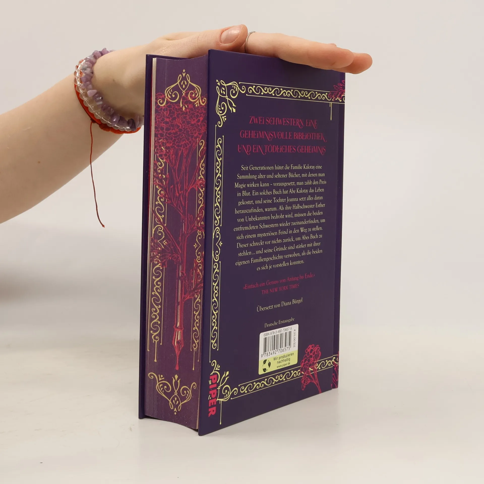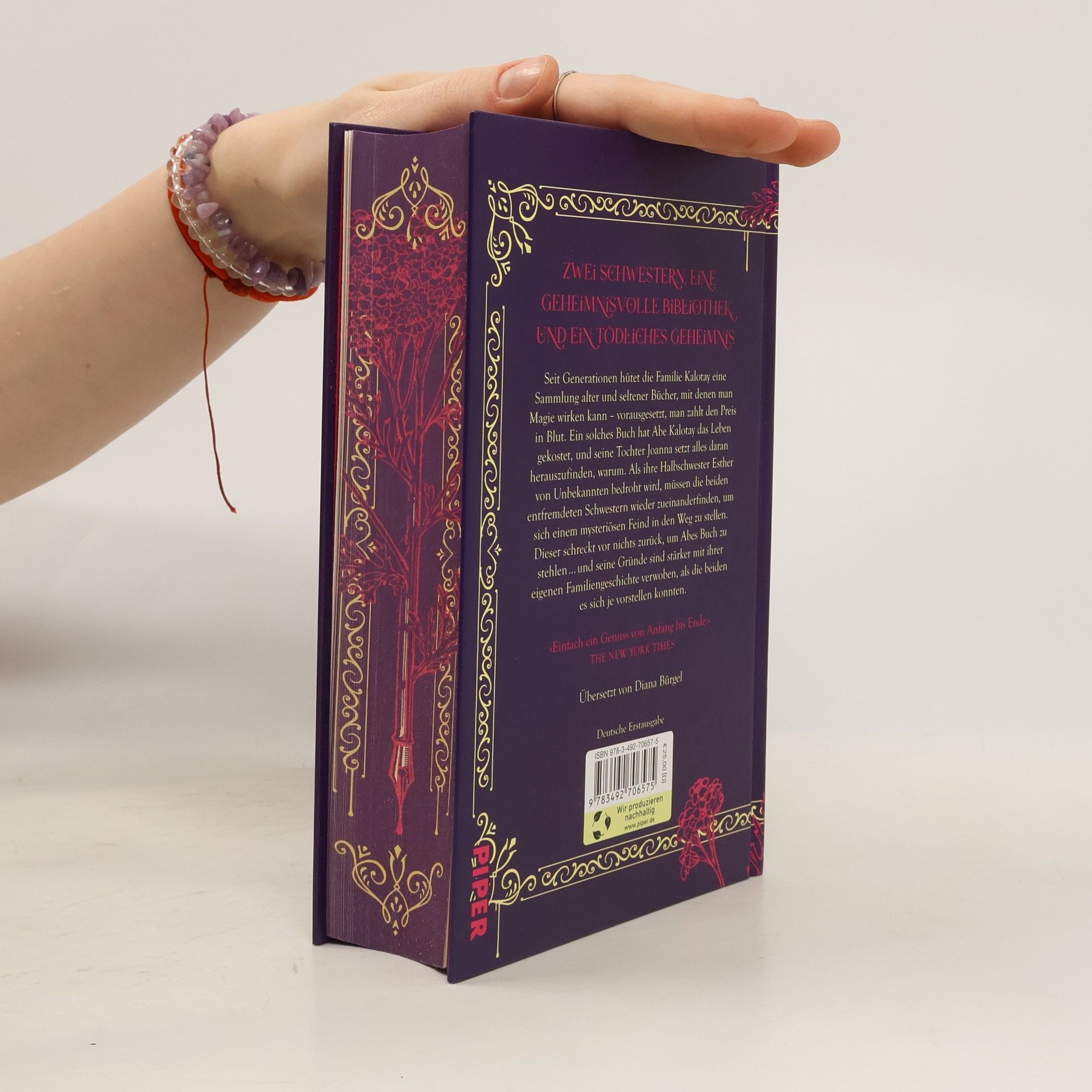 Bücher, in Blut geschrieben. Spiegel, durch die mysteriöse Verfolger jeden Schritt beobachten. Und eine magische Bibliothek voller Geheimnisse. Seit Generationen hütet die Familie Kalotay eine Sammlung alter und seltener Bücher. Bücher, mit denen man Magie wirken kann – vorausgesetzt, man zahlt den Preis in Blut. Ein solches Buch hat Abe Kalotay das Leben gekostet, und seine Tochter Joanna setzt alles daran, herauszufinden, warum. Als ihre Halbschwester Esther von Unbekannten bedroht wird, müssen die beiden entfremdeten Schwestern wieder zueinander finden, um sich einem mysteriösen Feind in den Weg zu stellen. Doch dieser schreckt vor nichts zurück, um Abes Buch zu stehlen – nicht einmal vor Mord. »Einfach ein Genuss von Anfang bis Ende.« The New York Times