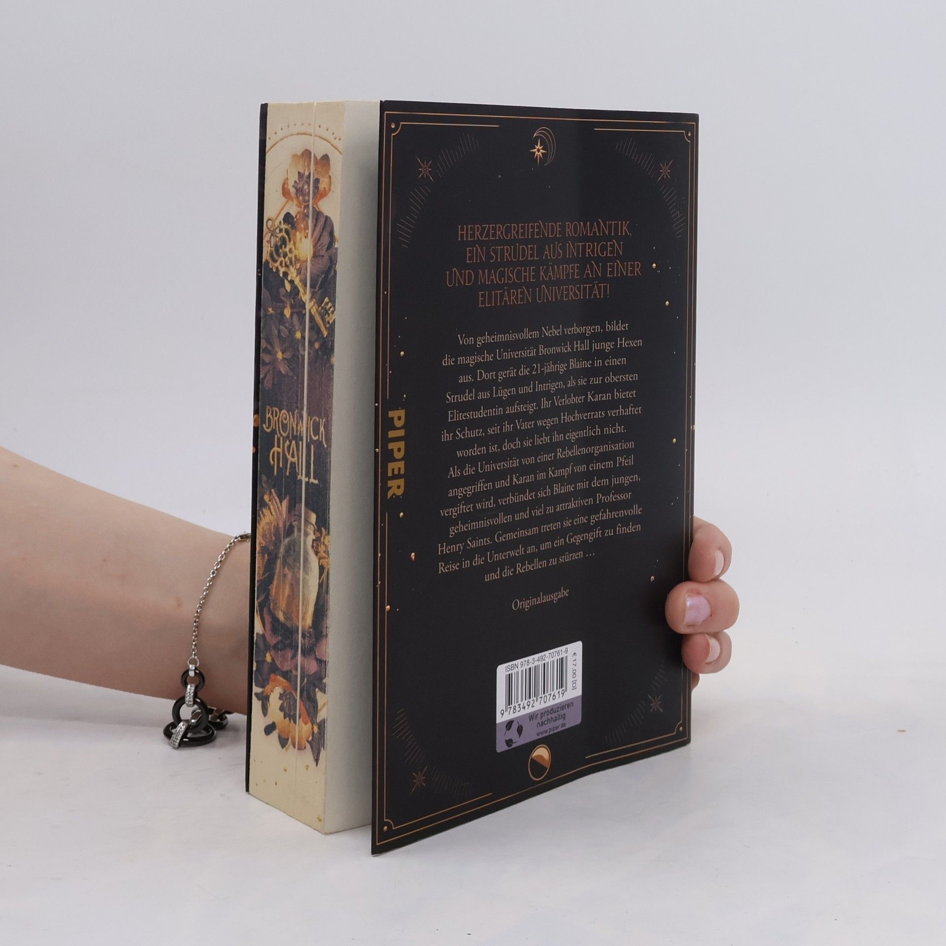 Eine magische Hexenakademie im Kampf gegen unheilvolle Rebellen! Von geheimnisvollem Nebel verborgen, bildet die magische Universität Bronwick Hall junge Hexen aus. Dort gerät die 21-jährige Blaine in einen Strudel aus Lügen und Intrigen, nachdem sie zur obersten Elitestudentin aufsteigt. Ihr Verlobter Karan bietet ihr Schutz, seit ihr Vater wegen Hochverrats verhaftet wurde, doch sie liebt ihn eigentlich nicht. Als die Universität von einer Rebellenorganisation angegriffen und Karan im Kampf von einem Pfeil vergiftet wird, verbündet sich Blaine mit dem jungen, geheimnisvollen und viel zu attraktiven Professor Henry Saints, um ihre Zukunft zu retten. Bronwick Hall:Band 1: DornengiftBand 2: Dornenkrone