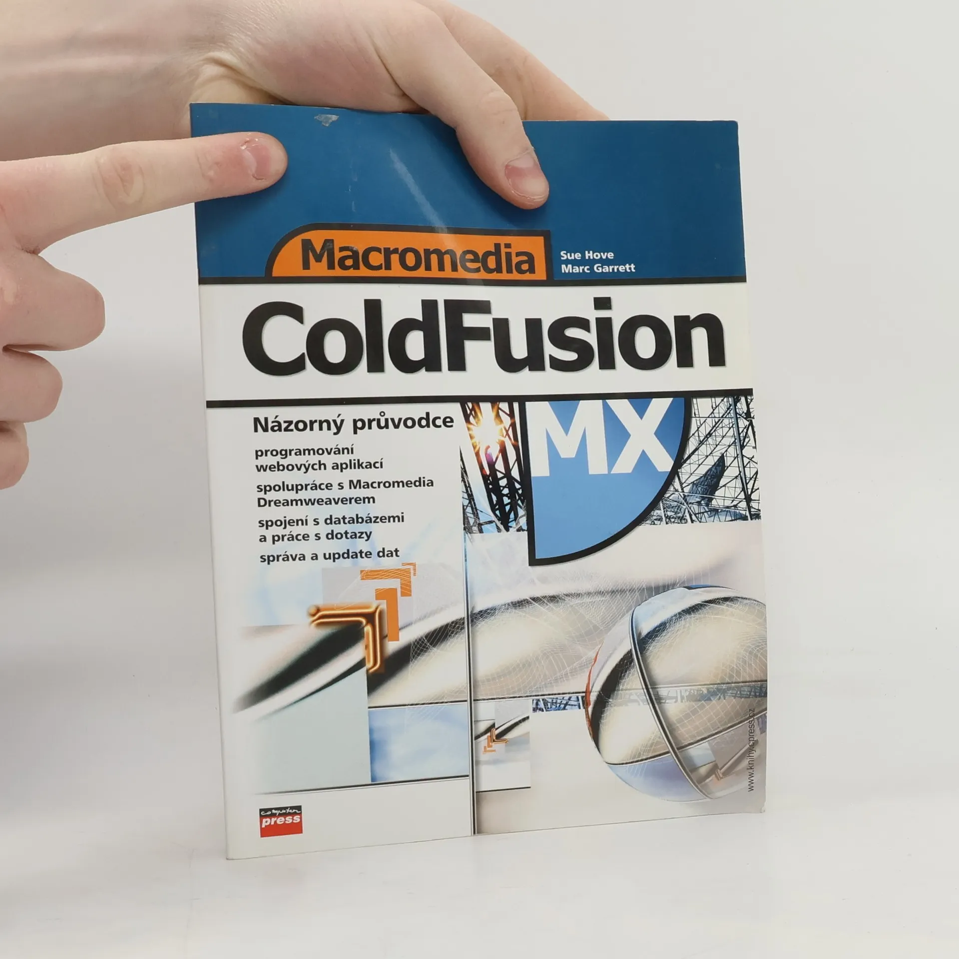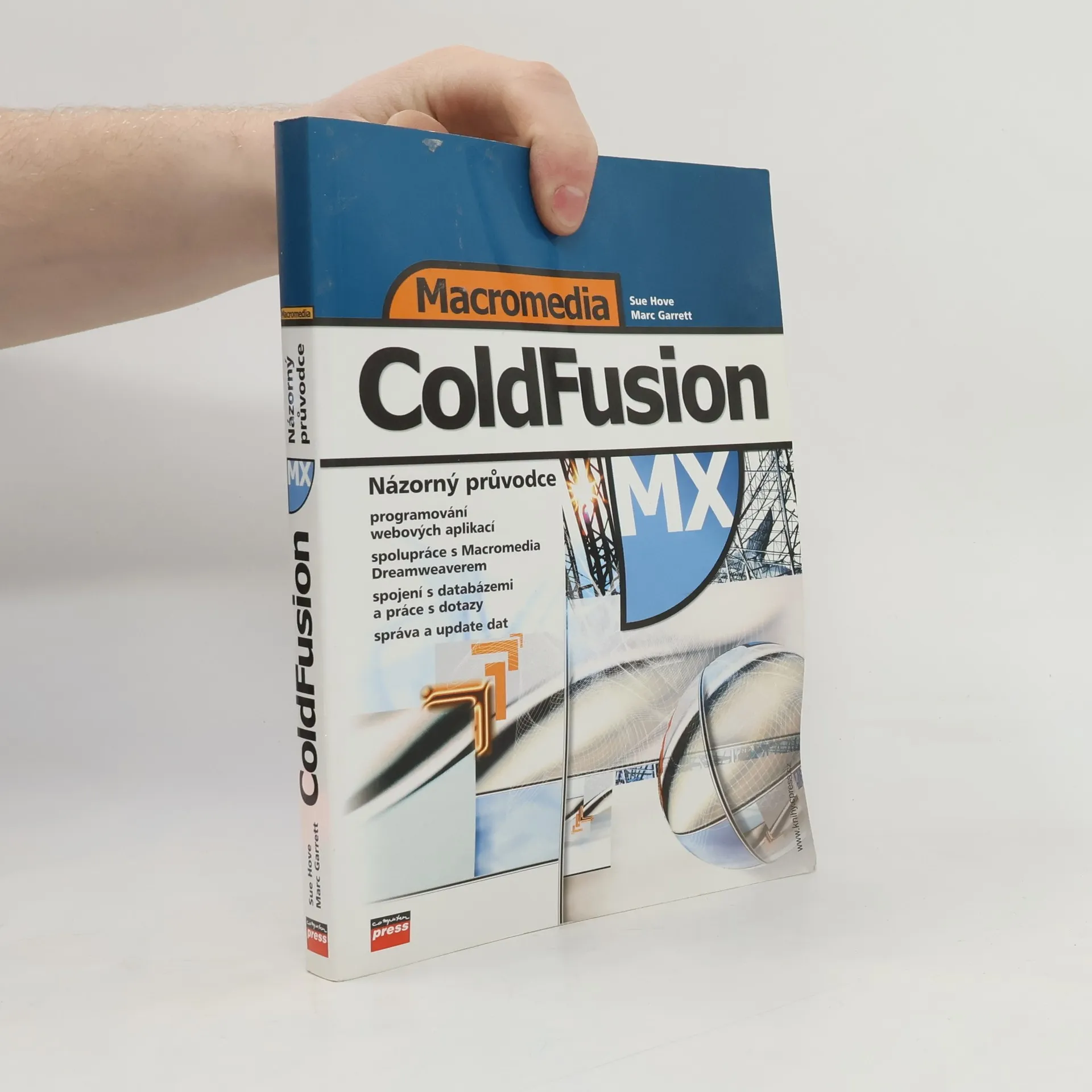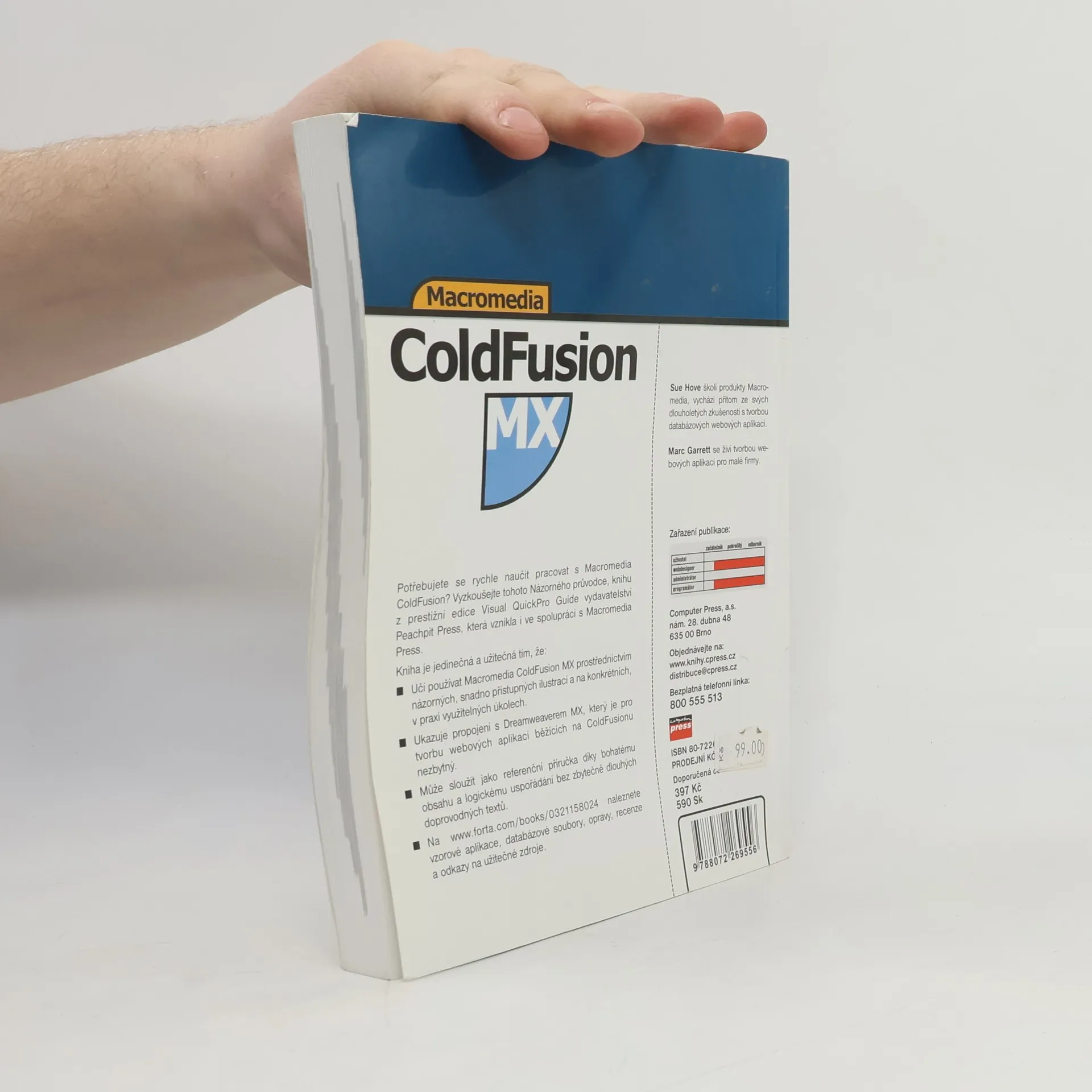 Názorný průvodce. Potřebujete se rychle naučit pracovat s Macromedia ColdFusion? Vyzkoušejte tohoto Názorného průvodce, knihu z prestižní edice Visual QuickPro Guide vydavatelství Peachpit Press, která vznikla i ve spolupráci s Macromedia Press. Kniha je jedinečná a užitečná tím, že: Učí používat Macromedia ColdFusion MX prostřednictvím názorných, snadno přístupných ilustrací a na konkrétních, v praxi využitelných úkolech. Ukazuje propojení s Dreamweaverem MX, který je pro tvorbu webových aplikací běžících na ColdFusionu nezbytný. Může sloužit jako referenční příručka díky bohatému obsahu a logickému uspořádání bez zbytečně dlouhých doprovodných textů. Na www.forta.com/books/0321158024 naleznete vzorové aplikace, databázové soubory, opravy, recenze a odkazy na užitečné zdroje. Sue Hove školí produkty Macromedia, vychází přitom ze svých dlouholetých zkušeností s tvorbou databázových webových aplikací. Marc Garrett se živí tvorbou webových aplikací pro malé firmy.
