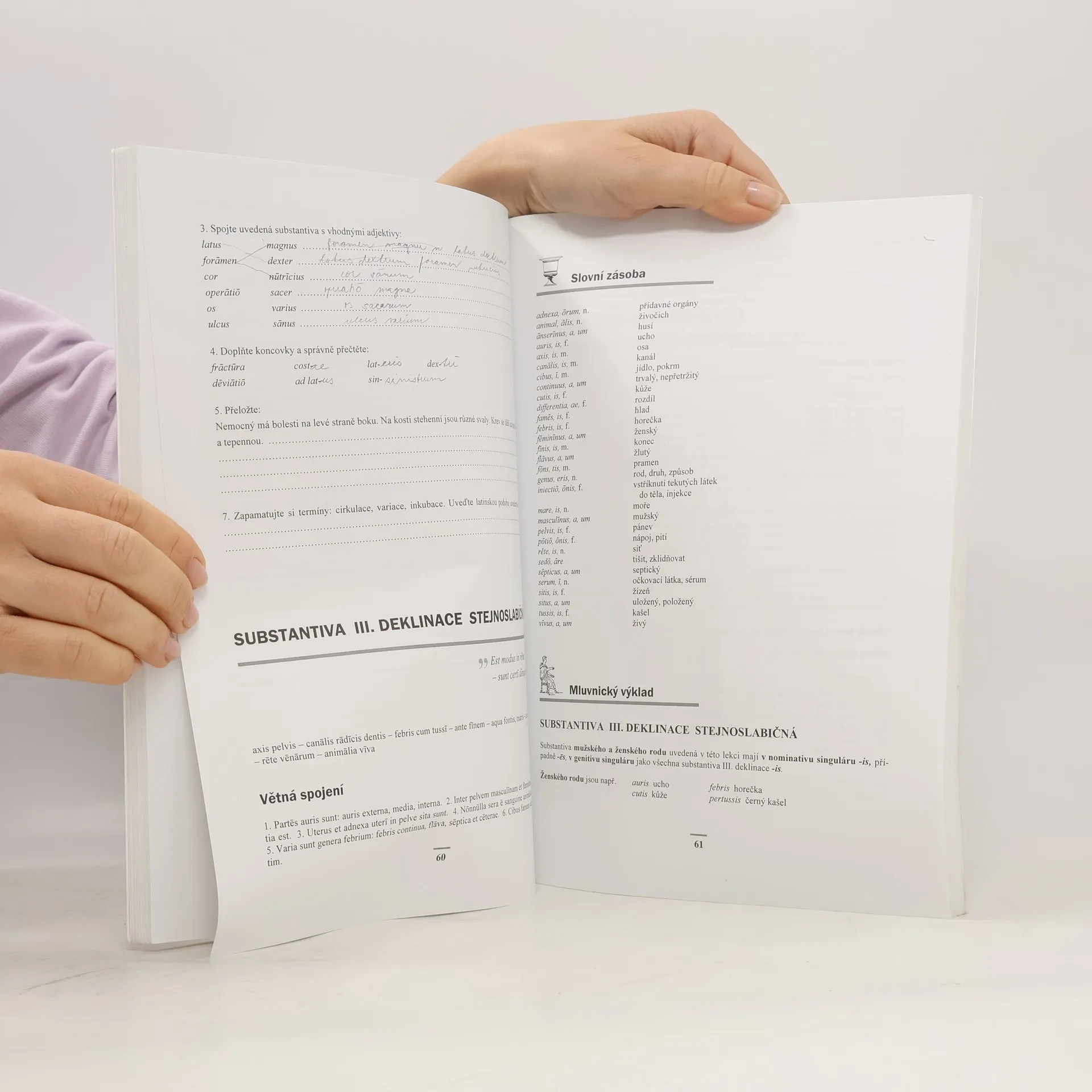 Základní mluvnické jevy s řadou cvičení i příklady diagnóz a odborné články rozšiřující slovní zásobu. Učebnice je doplněna oboustranným slovníkem a slouží zároveň jako pracovní sešit.