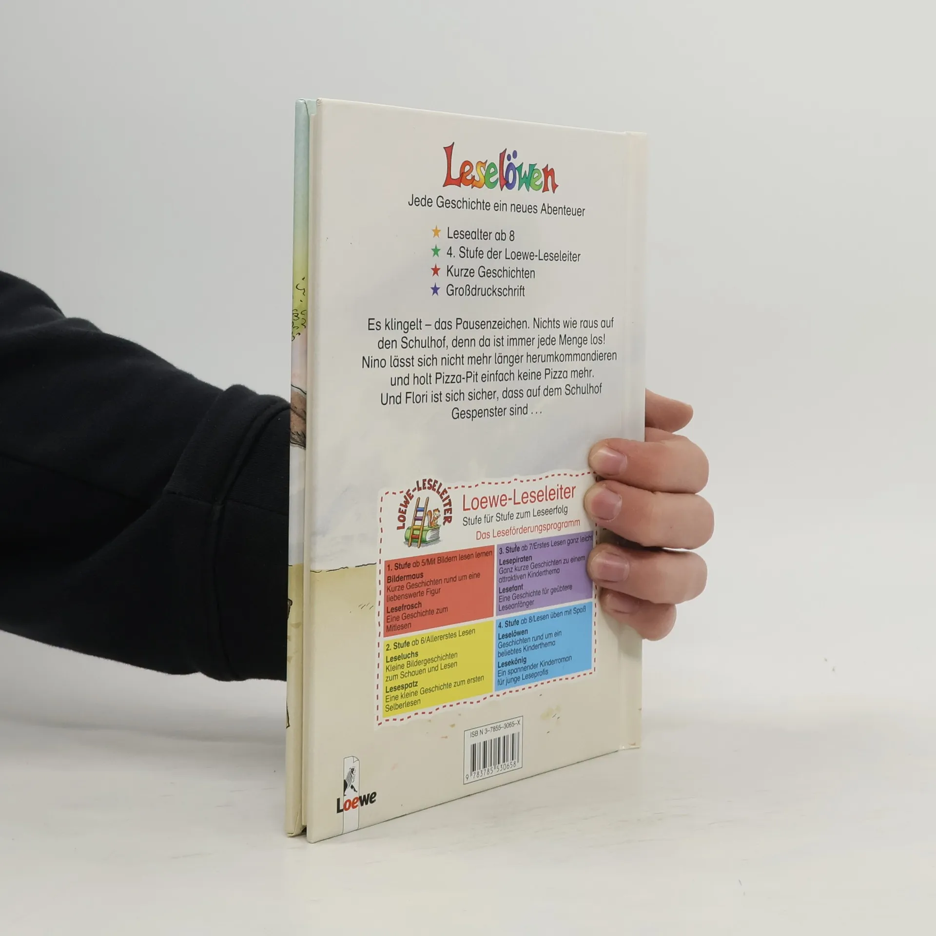 Lesealter ab 8 4. Stufe der Loewe-Leseleiter Kurze Geschichten Großdruckschrift Es klingelt - das Pausenzeichen. Nichts wie raus auf den Schulhof, denn da ist immer jede Menge los! Nino lässt sich nicht mehr länger herumkommandieren und holt Pizza-Pit einfach keine Pizza mehr. Und Flori ist sich sicher, dass auf dem Schulhof Gespenster sind.