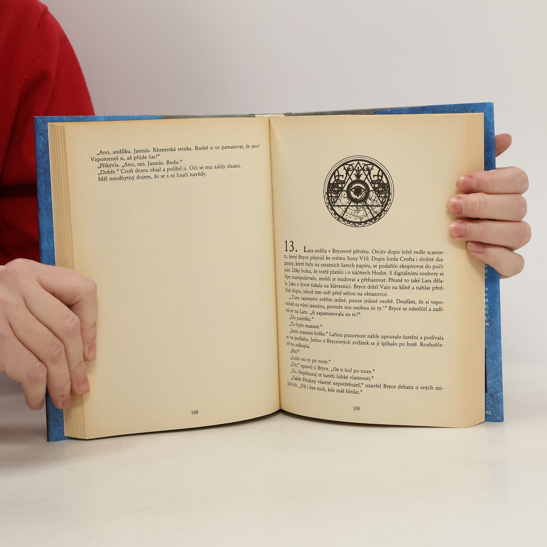 Je chytrá, krásná a odvážná, vyhledává nebezpečí a pouští se do nečekaných dobrodružství. Jako dáma z lepší společnosti by neměla nosit šortky nebo se prohánět na motorce, ale Lara Croft se nenechá omezovat. Z mocného rodu Croftů zdědila nejen impozantní sídlo, ale i těžký úkol: zabránit tajemné lóži Osvícených v získání prastaré relikvie, jež by mohla zničit lidstvo. Její otec se pokusil Osvíceným postavit na odpor a zaplatil za to životem. Lara je odhodlána pomstít jeho smrt a pokračovat v jeho odkazu. Příběh zavede čtenáře do exotické Kambodže, tajemných Benátek a drsné pustiny za polárním kruhem. Naštěstí má po svém boku dobré přátele, jako je počítačový virtuóz Bryce a brilantní komorník Hillary. Čelí oživlým sochám, nebezpečným pastem a zradě jednoho z nejbližších. Její nejtěžší úkol však spočívá v překonání sama sebe, svých vzpomínek a touhy. Poutavý příběh nabízí napětí, humor, zradou, lásku a smrtelné nebezpečí. „Svět není takový, jaký se na první pohled zdá,“ varoval lord Croft svou dceru. A skutečně, není.