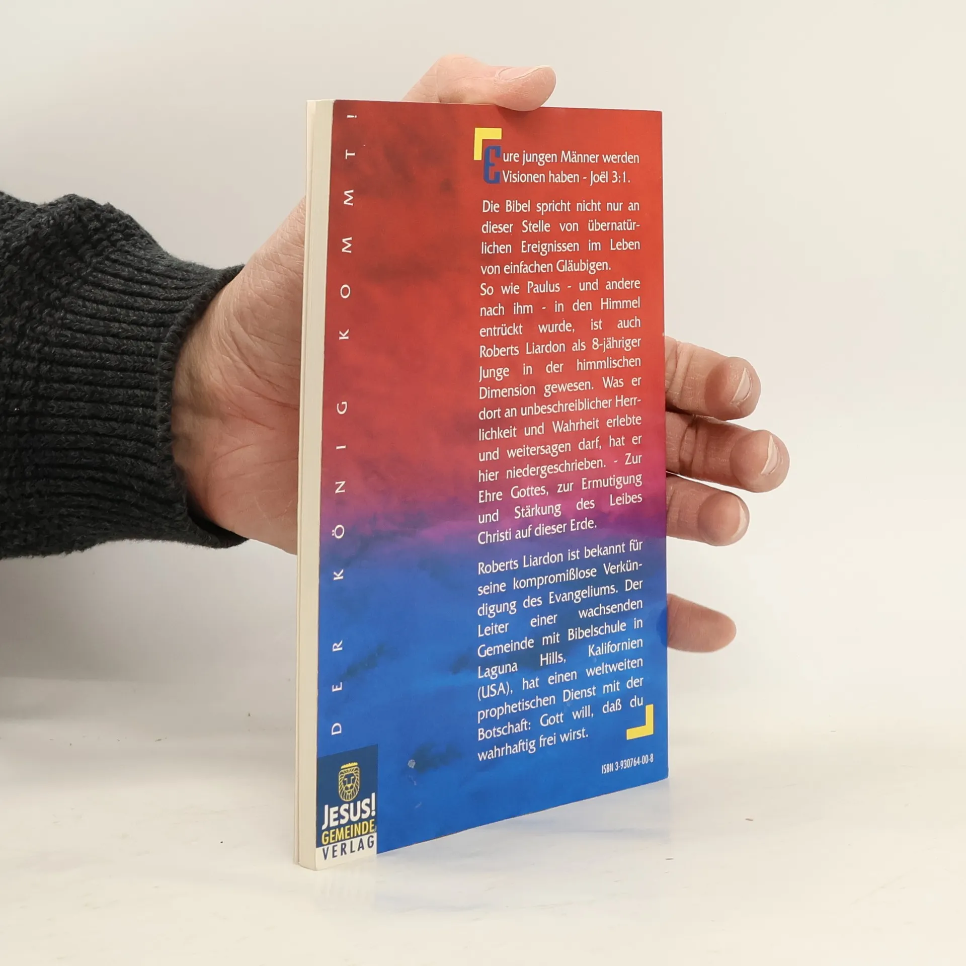 Eure jungen Männer werden Visionen haben - Joel 3:1. Die Bibel spricht nicht nur an dieser Stelle von übernatürlichen Ereignissen im Leben von einfachen Gläubigen. So wie Paulus - und andere nach ihm - in den Himmel entrückt wurde, ist auch Roberts Liardon als 8-jähriger Junge in der himmlischen Dimension gewesen. Was er dort an unbeschreiblicher Herrlichkeit und Wahrheit erlebte und weitersagen darf, hat er hier niedergeschrieben. - Zur Ehre Gottes, zur Ermutigung und Stärkung des Leibes Christi auf dieser Erde.
