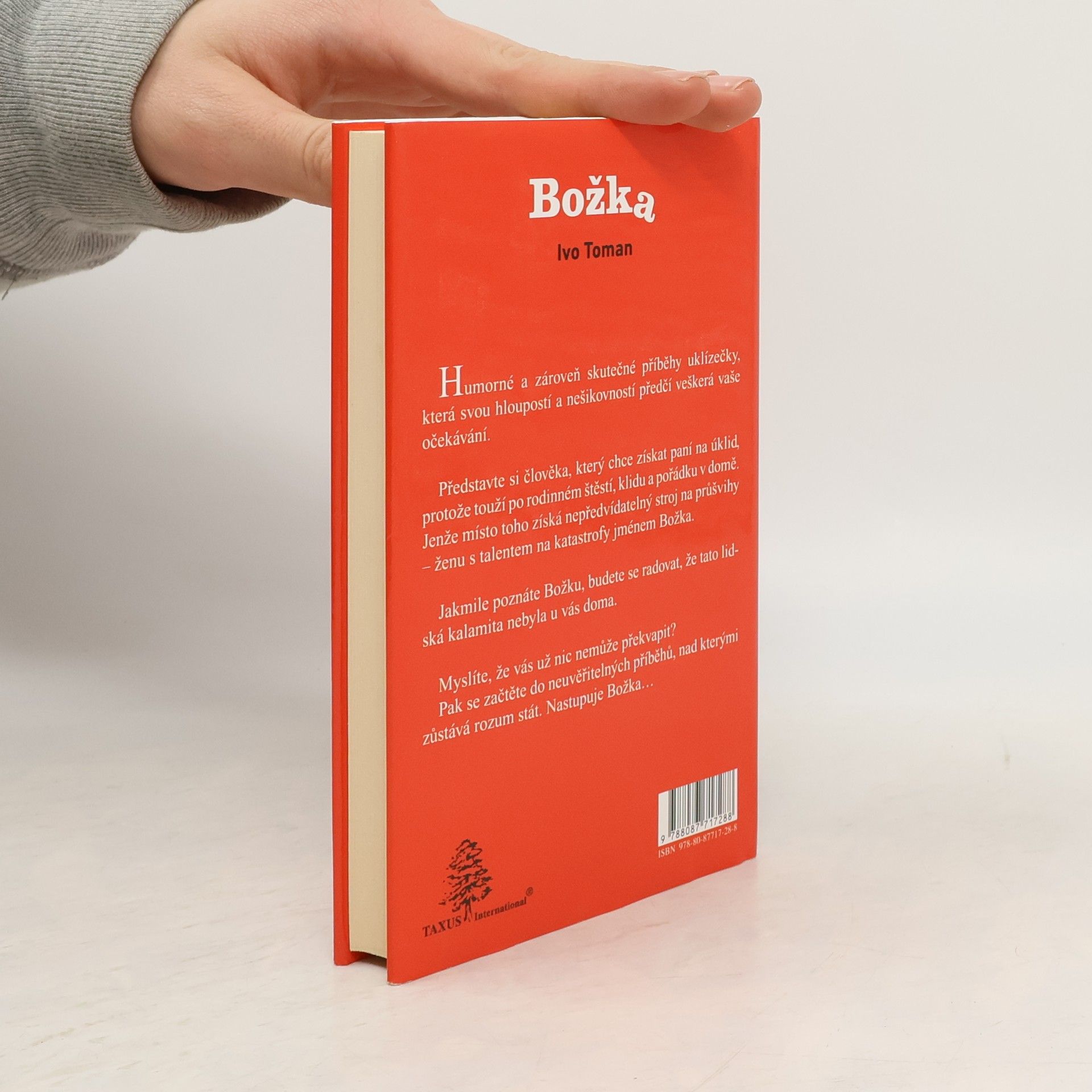 Humorné a zároveň skutečné příběhy uklízečky, která svou hloupostí a nešikovností předčí veškerá vaše očekávání. Představte si člověka, který chce získat paní na úklid, protože touží po rodinném štěstí, klidu a pořádku v domě. Jenže místo toho získá nepředvídatelný stroj na průšvihy - ženu s talentem na katastrofy jménem Božka. Jakmile poznáte Božku, budete se radovat, že tato lidská kalamita nebyla u vás doma. Myslíte, že vás už nic nemůže překvapit? Pak se začtěte do neuvěřitelných příběhů, nad kterými zůstává rozum stát. Nastupuje Božka… Ivo Toman je autor čtrnácti populárně naučných knih. Kniha Kurvítka v hlavě získala ocenění Český Bestseller za rok 2018 v kategorii Odborná literatura pro dospělé. Humoristická kniha Božka je autorovou prvotinou na poli beletrie.