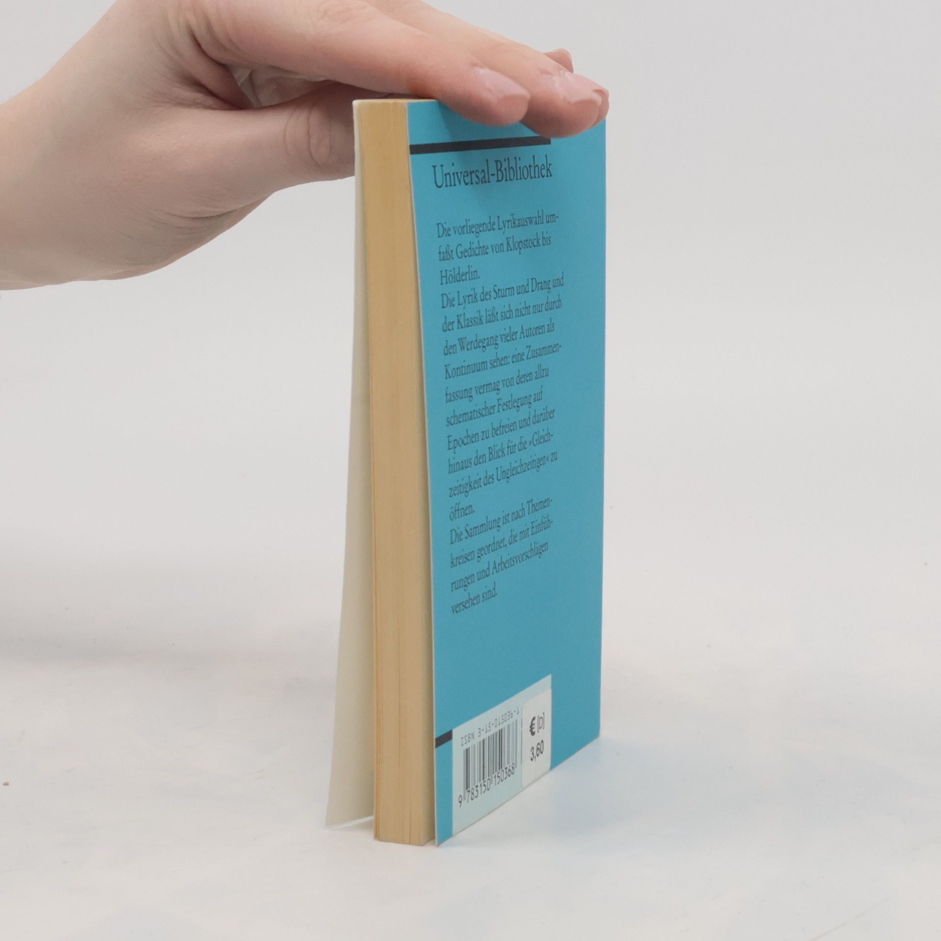 Die Gedichtauswahl umfasst Gedichte von Klopstock bis Hölderlin und ist nach Themenkreisen geordnet, die mit Einführungen und Arbeitsvorschlägen versehen sind.