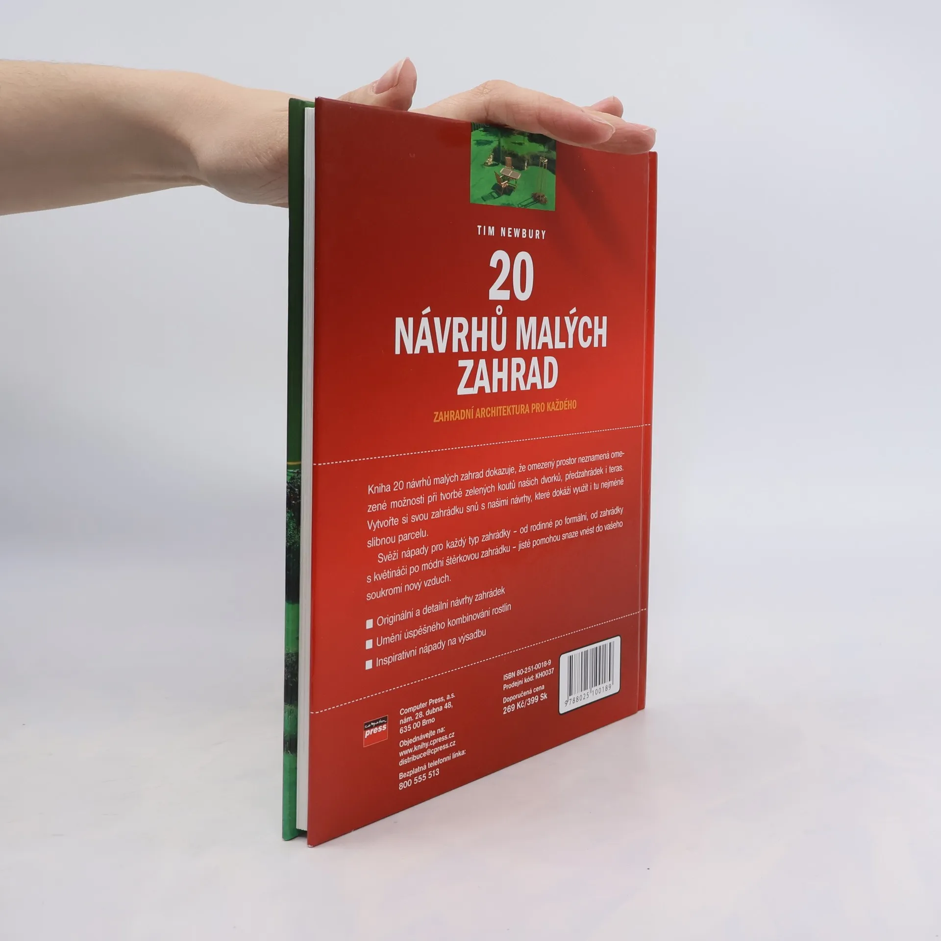 Kniha 20 návrhů malých zahrad dokazuje, že omezený prostor neznamená omezené možnosti při tvorbě zelených koutů našich dvorků, předzahrádek i teras. Vytvořte si svou zahrádku snů s našimi návrhy, které dokáží využít i tu nejméně slibnou parcelu. Svěží nápady pro každý tip zahrádky - od rodinné po formální, od zahrádky s květináči po módní štěrkovou zahrádku - jistě pomohou snaze vnést do vašeho soukromí nový vzduch.... celý text