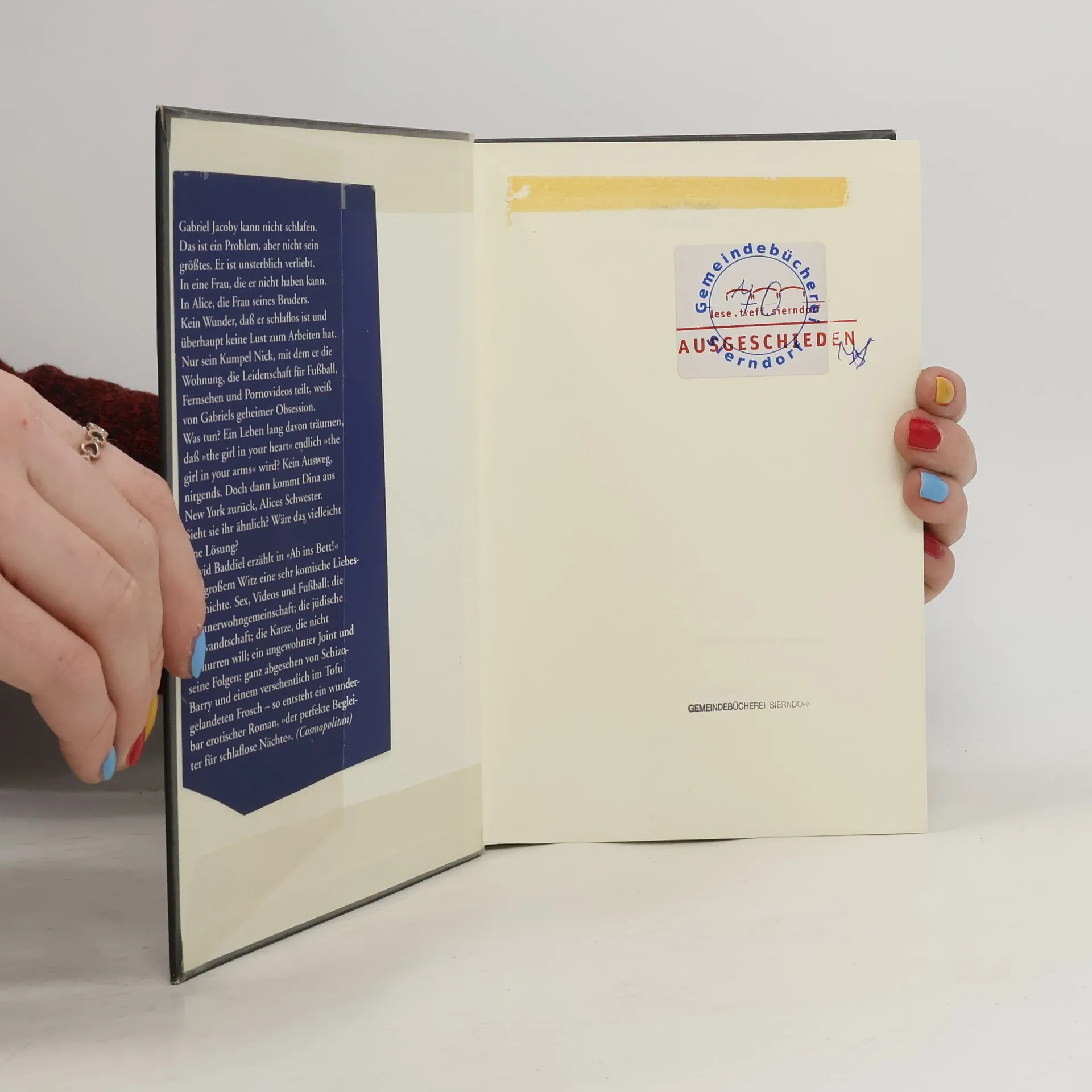 Gabriel Jacoby kann nicht schlafen. Ein Problem, aber nicht sein größtes. Denn Gabriel ist verliebt. Unsterblich verliebt in eine Frau, die er nicht haben kann. In Alice, die Frau seines Bruders. Alle seine Versuche, den Gefühlen den Garaus zu machen, enden im Gegenteil. Er liebt sie nur noch mehr und schläft noch weniger. Doch dann kommt Dina nach London zurück, Alices Schwester. Wäre das die Lösung? Das erste Rendezvous ist jedenfalls eine Katastrophe. Und dann finden die beiden auch noch Gabriels besten Freund nackt in einer Mülltonne vor der Hautür. Ein mäßig gutes Omen ...