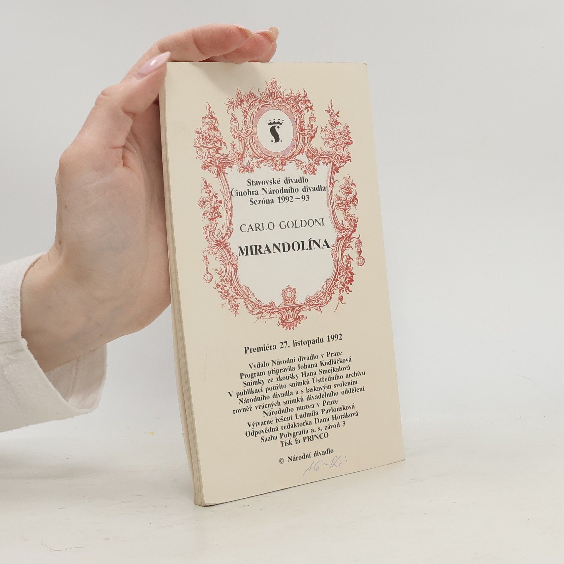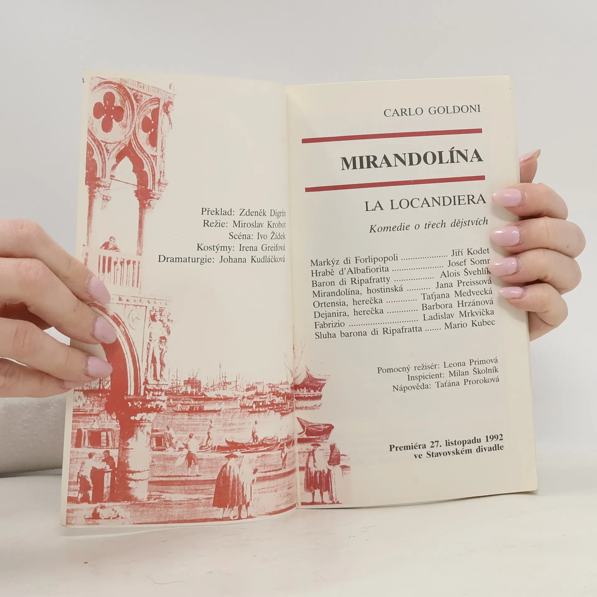 Carlo Goldoni, Mirandolína. Komedie o třech dějstvích, Johana Kudláčková, Zdeněk Digrin
