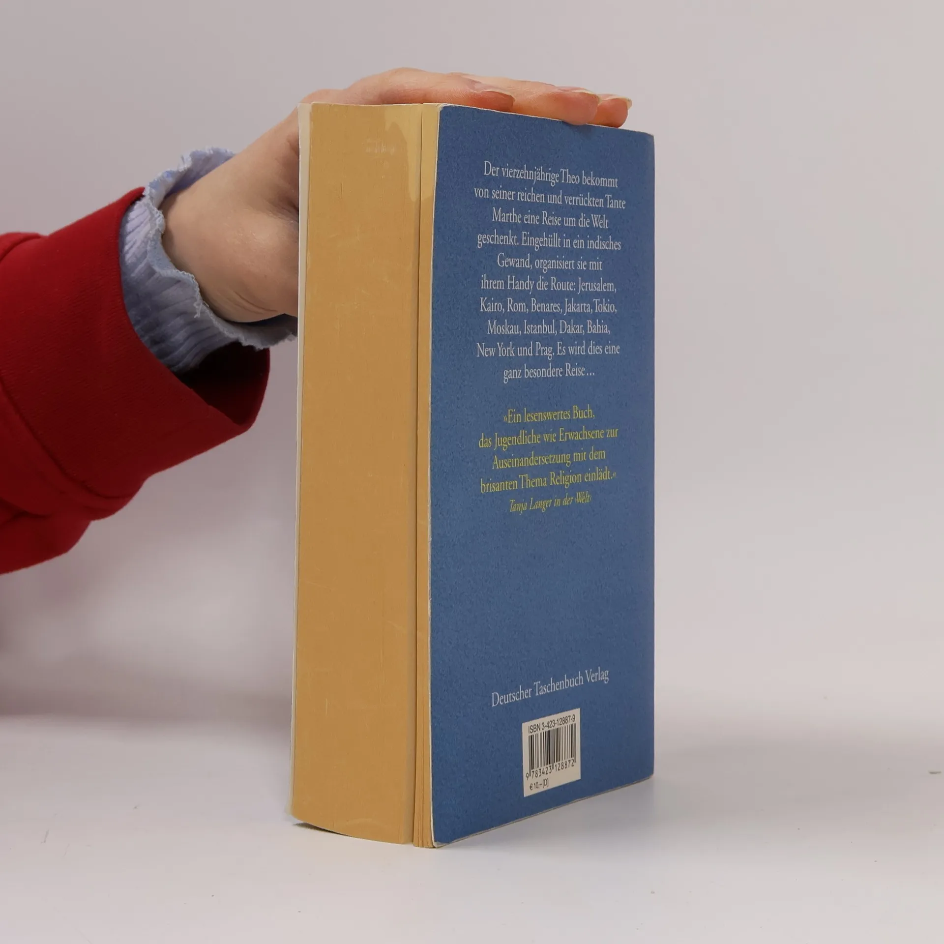 Er ist ein Morgenmuffel und liest bis spät in die Nacht Bücher über das alte Ägypten oder tibetanische Totenbücher. Theo ist 14 Jahre alt und lebt in Paris. Und wenn er nicht gerade seinen Kopf in Bücher steckt, sitzt er vor dem Computer und versucht das Rätsel des Tages zu lösen, das ihm seine rothaarige Computerfreundin Pythia stellt. In Theos Leben gibt es noch seine senegalesische Freundin Fatou, seine griechische Mutter Melina, seinen französischen Vater Jérôme und seine beiden Schwestern. Als sein morgendlicher Schwindel nicht nachläßt, erfährt Theo nach einem Arzttermin, dass er schwer krank ist. Eine mysteriöse Krankheit, die schlimmstenfalls mit dem Tod enden kann. Die Ärzte sind machtlos. Kurzerhand plant seine Tante Marthe eine ungewöhnliche Reise - eine Reise durch die Religionen der Welt. Theo sieht Jerusalem, Kairo, Rom, Benares, Jakarta, Tokio, Moskau, Istanbul, Dakar, Bahia, New York und Prag. Überall treffen er und Tante Marthe kundige Führer, die vom Judentum bis zum Schamanismus, von der Urkirche bis zum Mormonentum Glaubensrichtungen erklären und ihn sogar an den wichtigsten Festen und Riten teilnehmen lassen. Bei einem dieser Riten erfährt Theo, dass seine Zwillingsschwester kurz nach der Geburt gestorben ist. Ein Tod, über den seine Eltern nie sprechen wollten. Wider aller Hoffnung wird Theo am Ende geheilt, jedoch nicht von der klassischen Medizin, sondern von Medizinmännern.