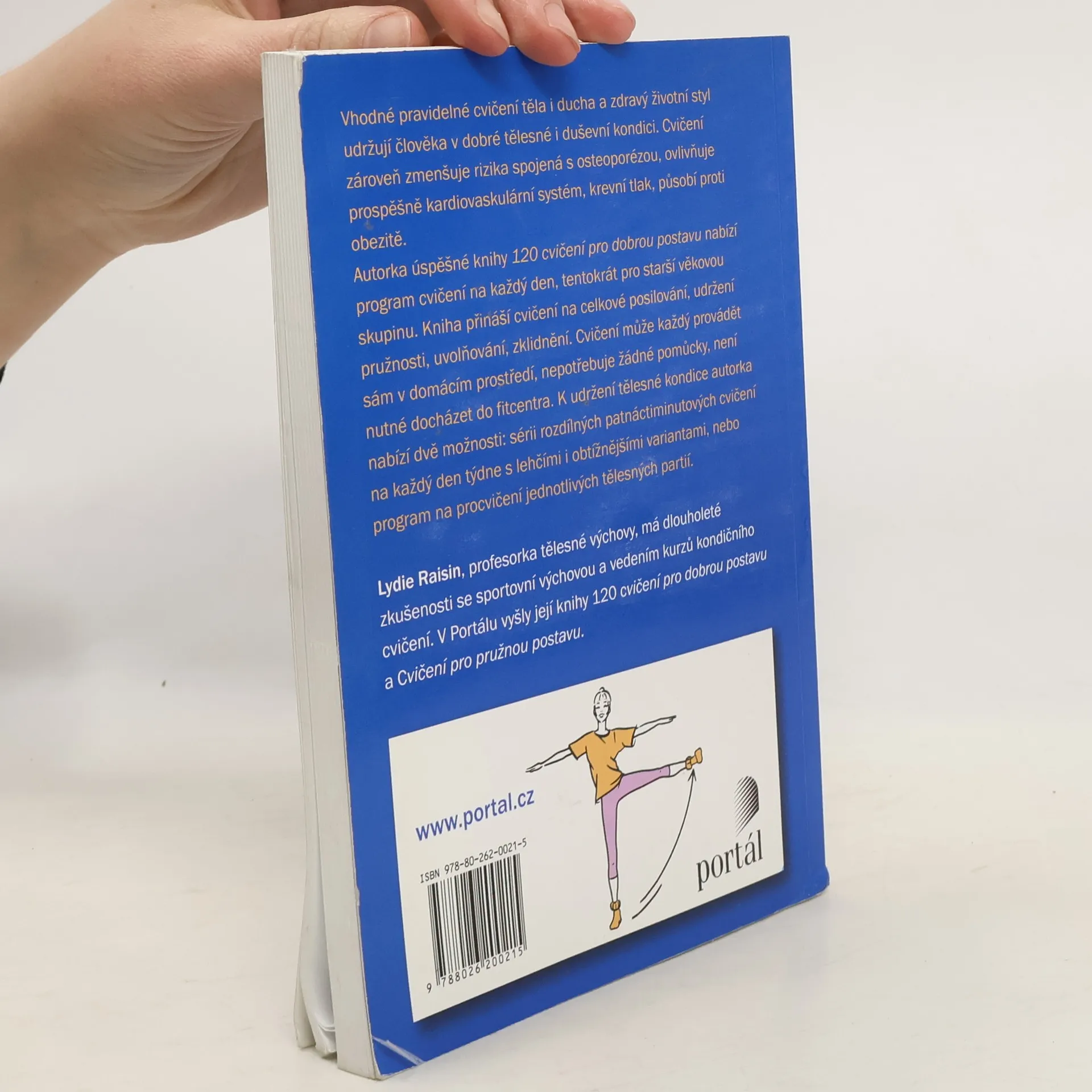 Autorka úspěšné knihy 120 cvičení pro dobrou postavu nabízí program cvičení na každý den, tentokrát pro věkovou skupinu lidí kolem šedesáti let. Lze zůstat ve formě, aniž bychom se zranili nebo riskovali. Kniha přináší cvičení na celkové posilování, udržení pružnosti, uvolňování, zklidnění – procvičování krku, ramen, zad, paží, trupu, břišních partií, stehen, nohou, kotníků a prstů. Cvičení může každý provádět sám v domácím prostředí, nepotřebuje žádné pomůcky, ani není nutné docházet do fitness centra. K udržení tělesné kondice autorka nabízí dvě možnosti: sérii rozdílných patnáctiminutových cvičení na každý den s lehčími i obtížnějšími variantami, nebo program na procvičení jednotlivých tělesných partií. Kniha je psána pro ty, kdo chtějí po šedesátce zůstat ve formě. Lydie Raisin, profesorka tělesné výchovy, má dlouholeté zkušenosti se sportovní výchovou a vedením kurzů kondičního cvičení, je autorkou mnoha pohybových programů tělesného rozvoje a úspěšných, opakovaně vydávaných publikací se cvičeními ke zlepšování a udržování tělesné kondice. V Portálu vyšly její knihy 120 cvičení pro dobrou postavu a Cvičení pro pružnou postavu.