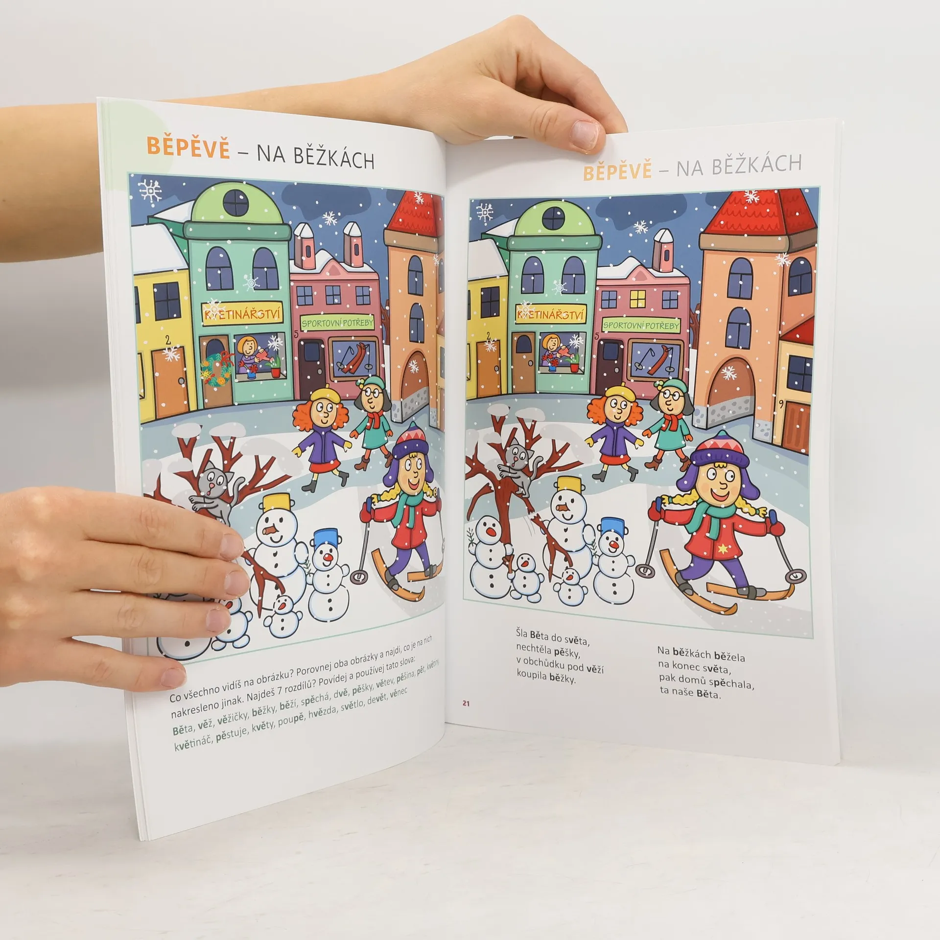 Hledání rozdílů s logopedickou říkankou. Hledání rozdílů je úkol, který mají všechny děti v oblibě. Kromě zrakové pozornosti a diferenciace si však děti v této knize procvičí především výslovnost, tvorbu vět, vyjadřování, logické myšlení, postřeh a smysl pro rým. Každý úkol je zaměřen na jednu hlásku, text říkanky vždy vychází z tématu obrázku. Pod obrázkem na protější straně jsou vypsána slova doporučená pro jeho popis a současně zaměřená k procvičování dané hlásky. Publikace tohoto typu, propojující hledání rozdílů s logopedií, u nás doposud nevyšla. Je určena pro děti předškolního a mladšího školního věku a jejich rodiče, logopedy a pedagogy MŠ a ZŠ.
