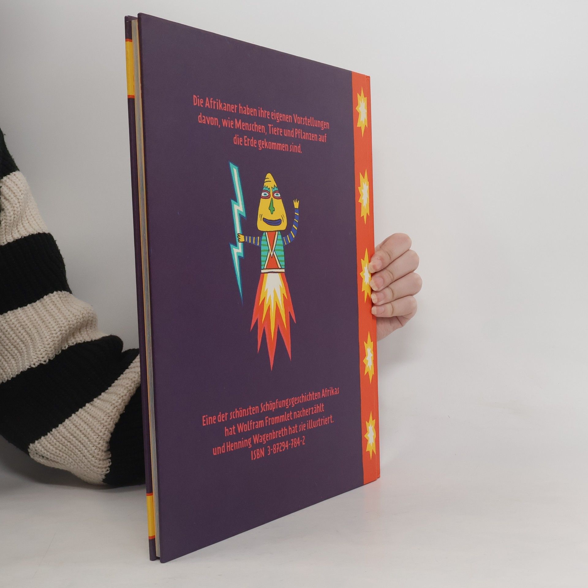 Eine poetische Geschichte, die einen alten afrikanischen Schöpfungsmythos erzählt, eine Geschichte über das Weibliche und Männliche, über Macht und Autorität, über Liebe und Sünde und die Befreiung der Menschen vom Übervater. Ausgezeichnet mit dem ersten Preis im internationalen Wettbewerb 'Schönste Bücher aus aller Welt' und als 'Schönstes deutsches Buch' durch die Stiftung Buchkunst.