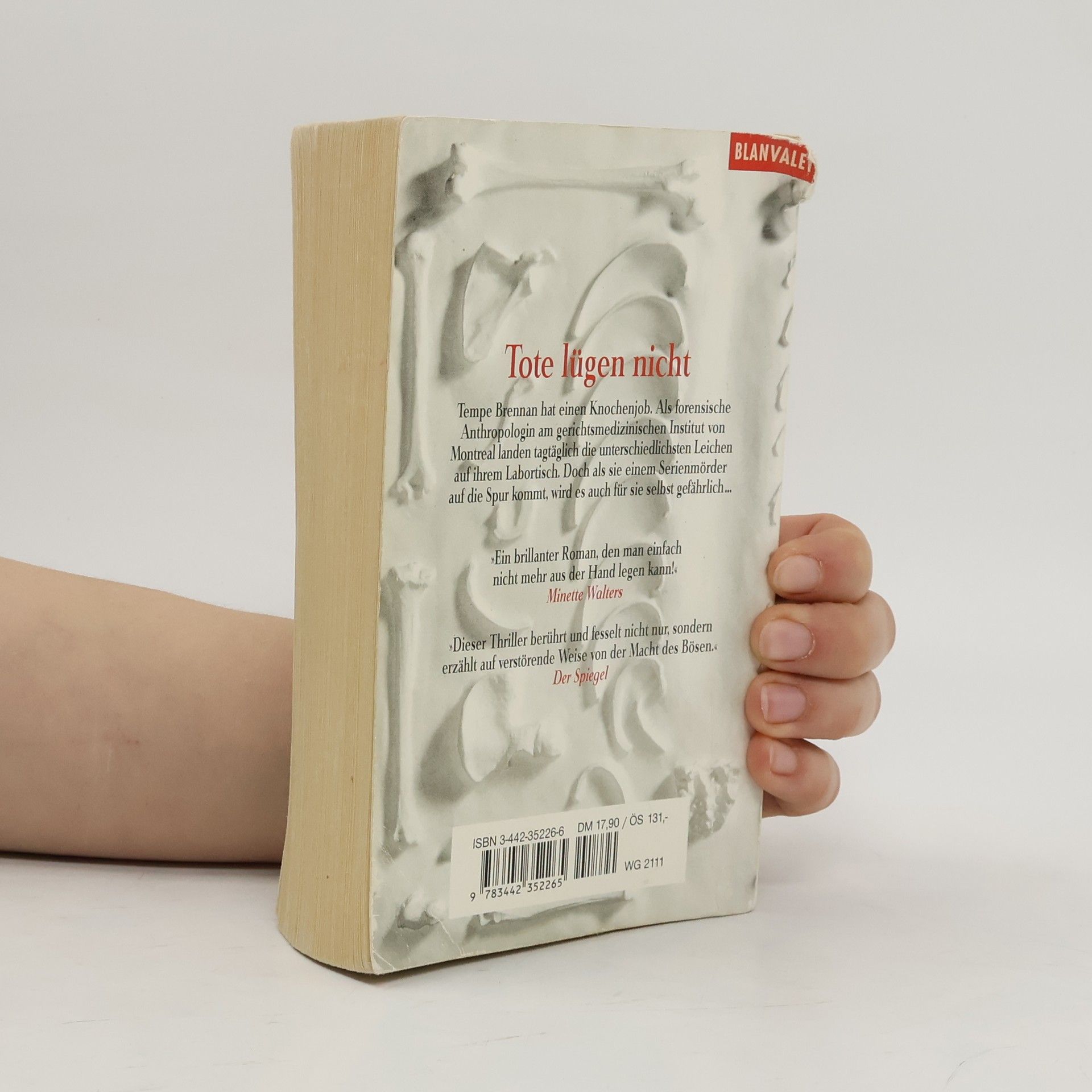 Tempe Brennan hat einen Knochenjob. Als forensische Anthropologin am gerichtsmedizinischen Institut von Montreal landen täglich die unterschiedlichsten Leichen auf ihren Labortisch. Als aber die dreiundzwanzigjährige Isabelle Gagnon mißbraucht, erdrosselt und zerstückelt in Müllsäcken aufgefunden wird, drängen sich Tempe alte, grauenvolle Bilder auf. Sie beginnt zu recherchieren, was sie auf die Spur eines psychopathischen Serienkillers bringt - und ihn auf ihre.