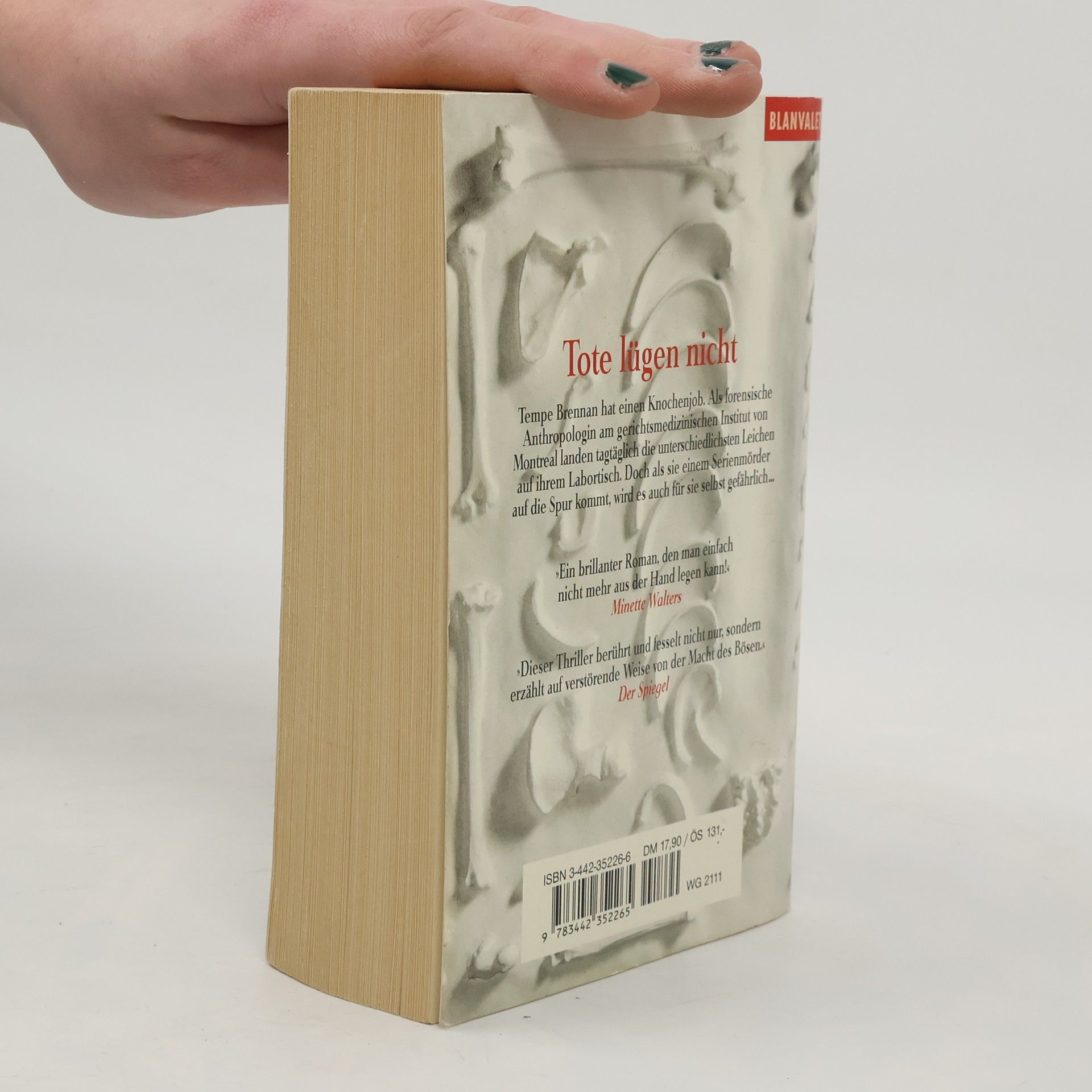 Tempe Brennan hat einen Knochenjob. Als forensische Anthropologin am gerichtsmedizinischen Institut von Montreal landen täglich die unterschiedlichsten Leichen auf ihren Labortisch. Als aber die dreiundzwanzigjährige Isabelle Gagnon mißbraucht, erdrosselt und zerstückelt in Müllsäcken aufgefunden wird, drängen sich Tempe alte, grauenvolle Bilder auf. Sie beginnt zu recherchieren, was sie auf die Spur eines psychopathischen Serienkillers bringt - und ihn auf ihre.