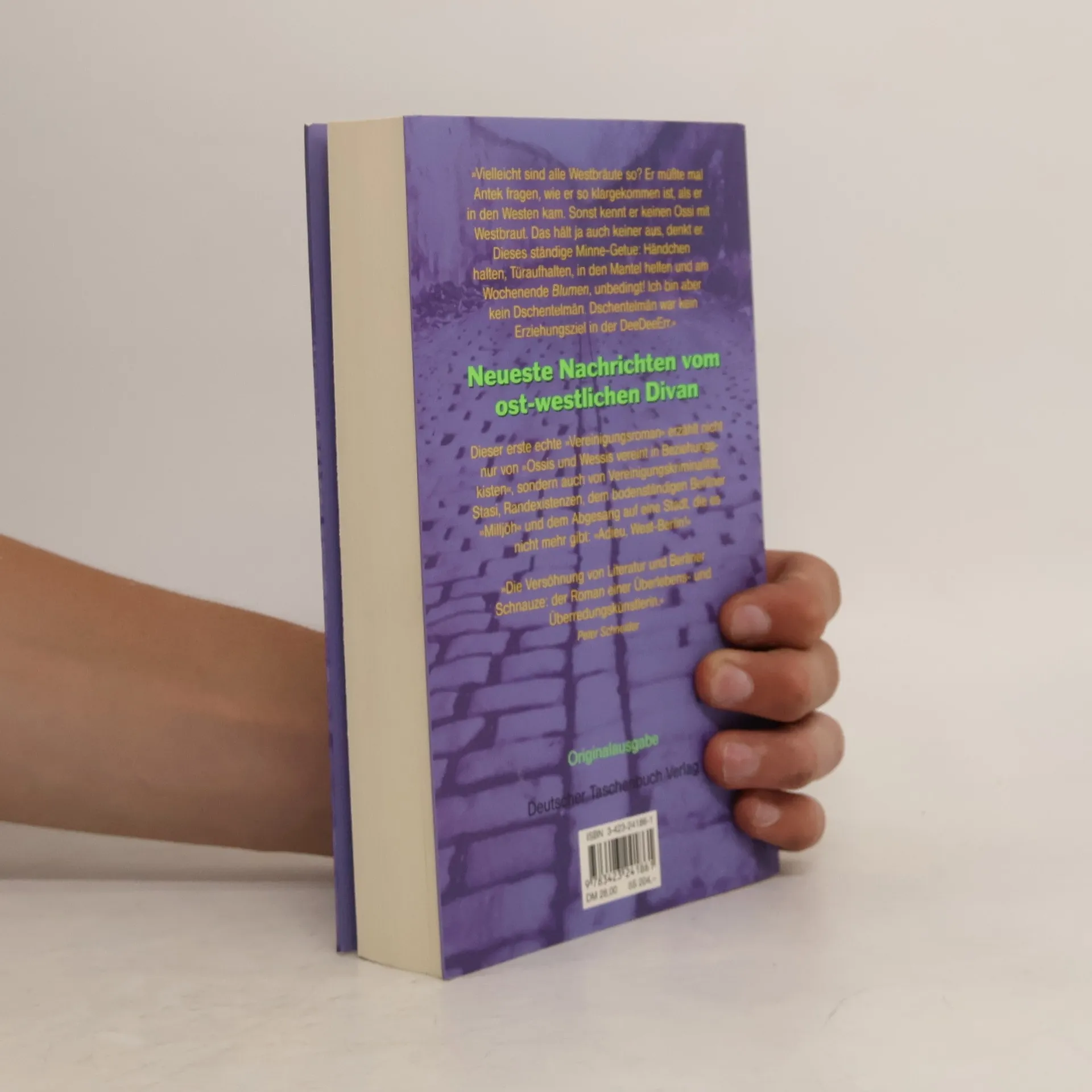 Berlin, ein Schmelztiegel an der Bruchstelle zwischen Ost und West, ist eine hektische Stadt, die mit der Bürde ihrer Geschichte ganz »kuhl« umgeht. Hier begegnen sich Ossis, Wessis, Russen, Juden und Japaner auf einem aufgerissenen Pflaster, das die Biographien der Menschen widerspiegelt, die in dieser Stadt leben. Unter ihnen ist Frank Zaunig, ein ambitionierter Schauspieler, der nach 1989 aus der Dissidentenverbannung in Anklam nach Berlin kommt. Er spielt gerne den »großen Wilden aus dem Osten« und verdient seinen Lebensunterhalt mit Pornosynchronisationen. Zwischen ihm und Claudia, einer vielgereisten Westfrau mit hohen Ansprüchen, entsteht zunächst das Prickeln einer »amour fou«. Die Charaktere des Romans wissen wenig voneinander und knüpfen dennoch chaotische Verbindungen, die ihre schlimmsten Vorurteile bestätigen. Aus dem Gestrüpp von Leidenschaften und existenziellen Notwendigkeiten entstehen folgenschwere Scheinehen, die die Grenzen der einstigen politischen Lager überschreiten. Marcia Zuckermann, geboren 1957 in Berlin als Kind deutsch-jüdischer Eltern, verbrachte ihre »Lehr- und Wanderjahre« in London, Paris, Barcelona und New York, bevor sie 1993 als Redakteurin nach Spanien zog.