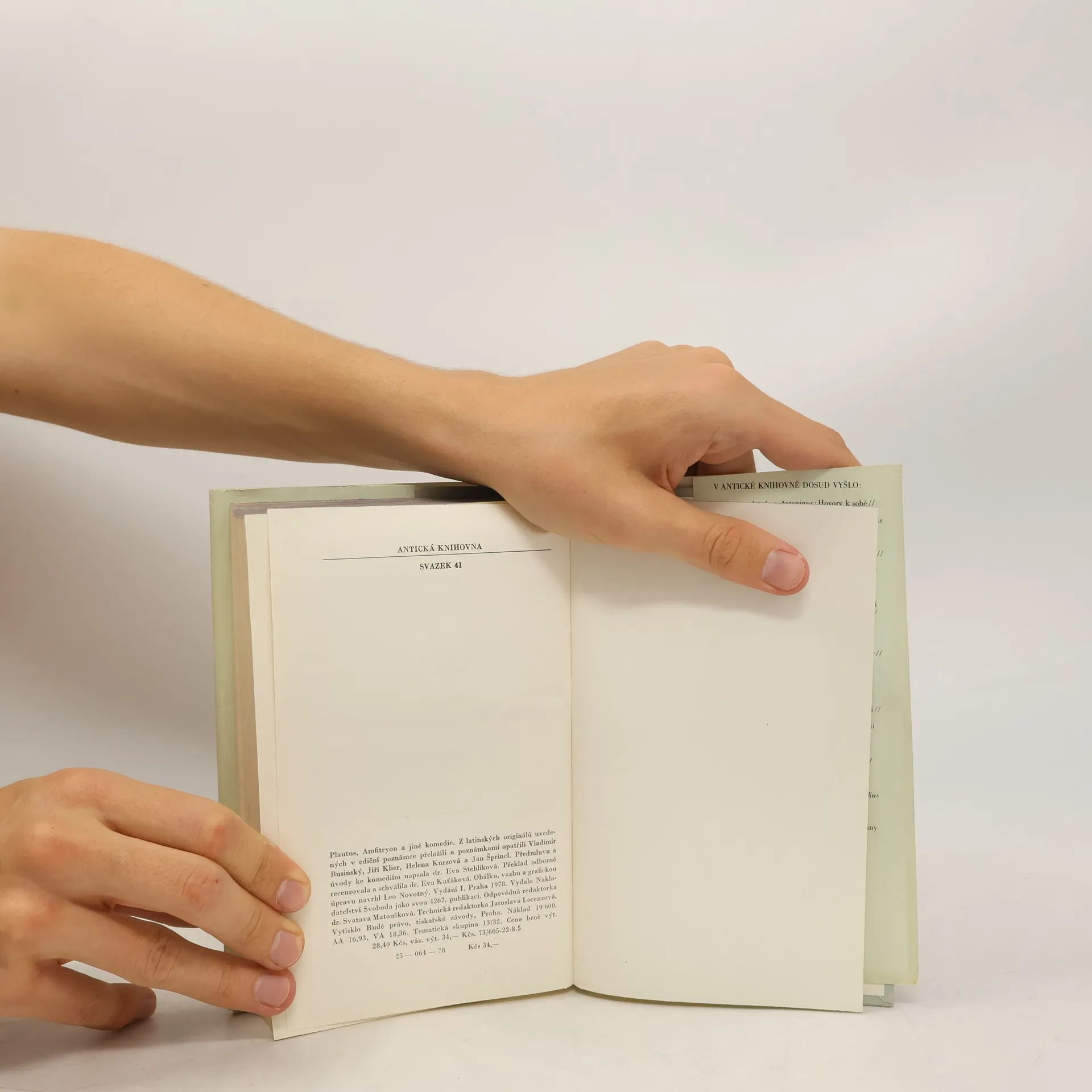 Klasik římské komedie Titus Maccius Plautus, miláček římského divadelního obecenstva, vzbudil zaslouženou pozornost už ve starověku a jeho veseloherní kusy oživovaly po staletí divadelní repertoár. Obrození zájmu o antického komediografa přínáší renesance, je překládán a vykládán humanisty, moderní evropská dramatika – Molière, Shakespeare, Holberg, Kleist, Ostrovský, Giraudoux, ale také Klicpera, Otokar Fischer, Voskovec a Werich – čerpá z Plautova díla podněty pro svou tvorbu. Tematicky čerpají Plautovy hry z bohatých zdrojů nové antické komedie. Hlavními motivy jsou překážky v lásce, osudy odložených nebo ztracených dětí, záměna podobných osob a nenadálá šťastná shledání. Plautus ovšem nakládal s řeckými předlohami velmi volně, často kontaminoval různé hry, obohatil hudební složkou komedií, především však okořenil uhlazené řecké komedie jadrným humorem římské ulice. Jeho postavy mluví šťavnatým lidovým jazykem, hýří situačním vtipem a slovními hříčkami. První plautovský svazek Antické knihovny přináší moderní české překlady sedmi Plautových komedií (Komedie o hrnci; Kasina; Amfitryon; Hra o skříňce; Komedie oslovská; Zajatci; Milenci).