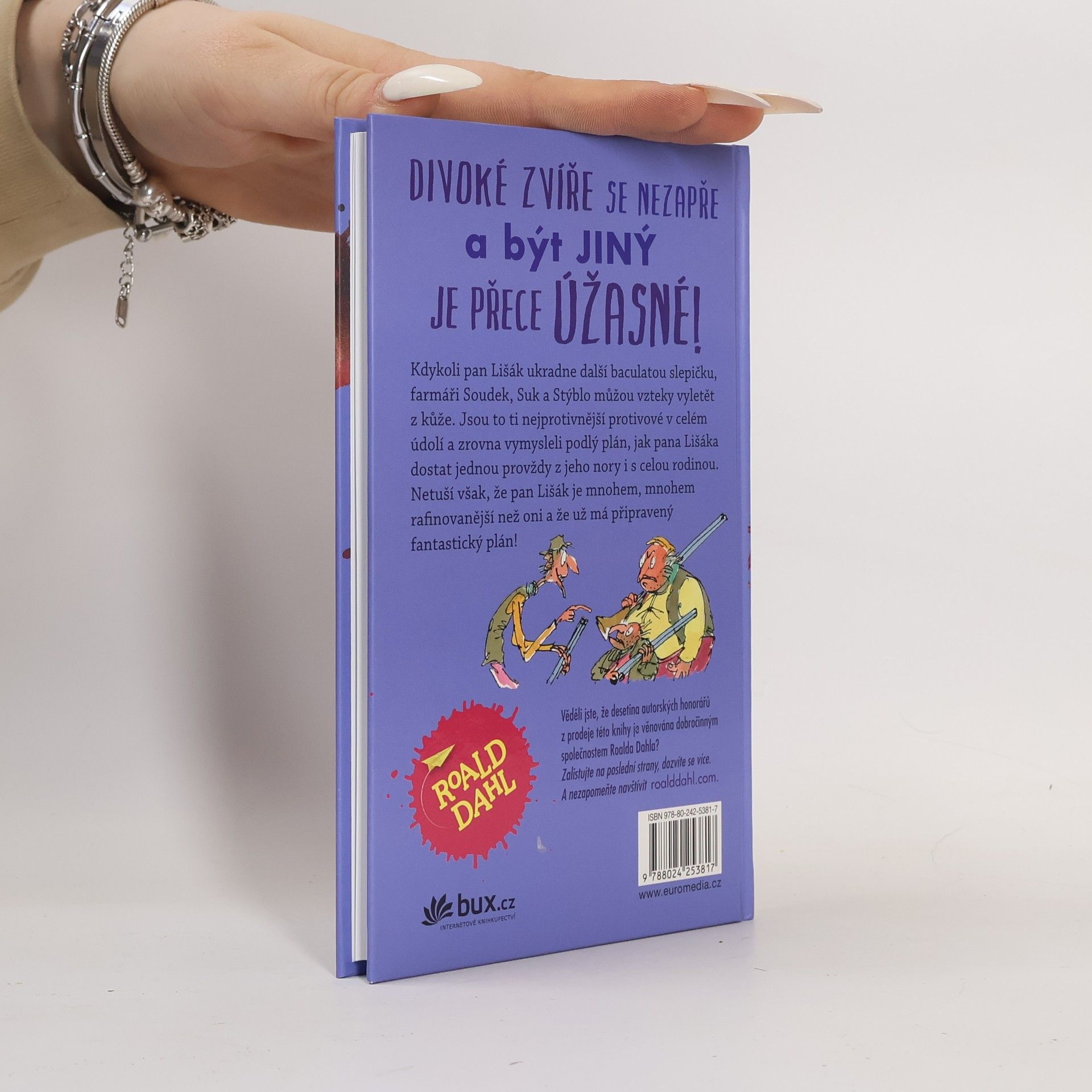 Již klasický příběh o prohnaném panu Lišákovi a jeho rodině, kterého se tři zlí venkované snaží mermomocí vyrýt rypadly z jeho doupěte a který se jim za pomoci dalších zvířecích kamarádů dostane na kobylku, vyšel po celém světě v mnoha vydáních a posloužil jako námět k animovanému filmu. Vypravěčské umění Roalda Dahla, jeho jemná ironie a cit pro detail, jistě potěší všechny jeho příznivce.