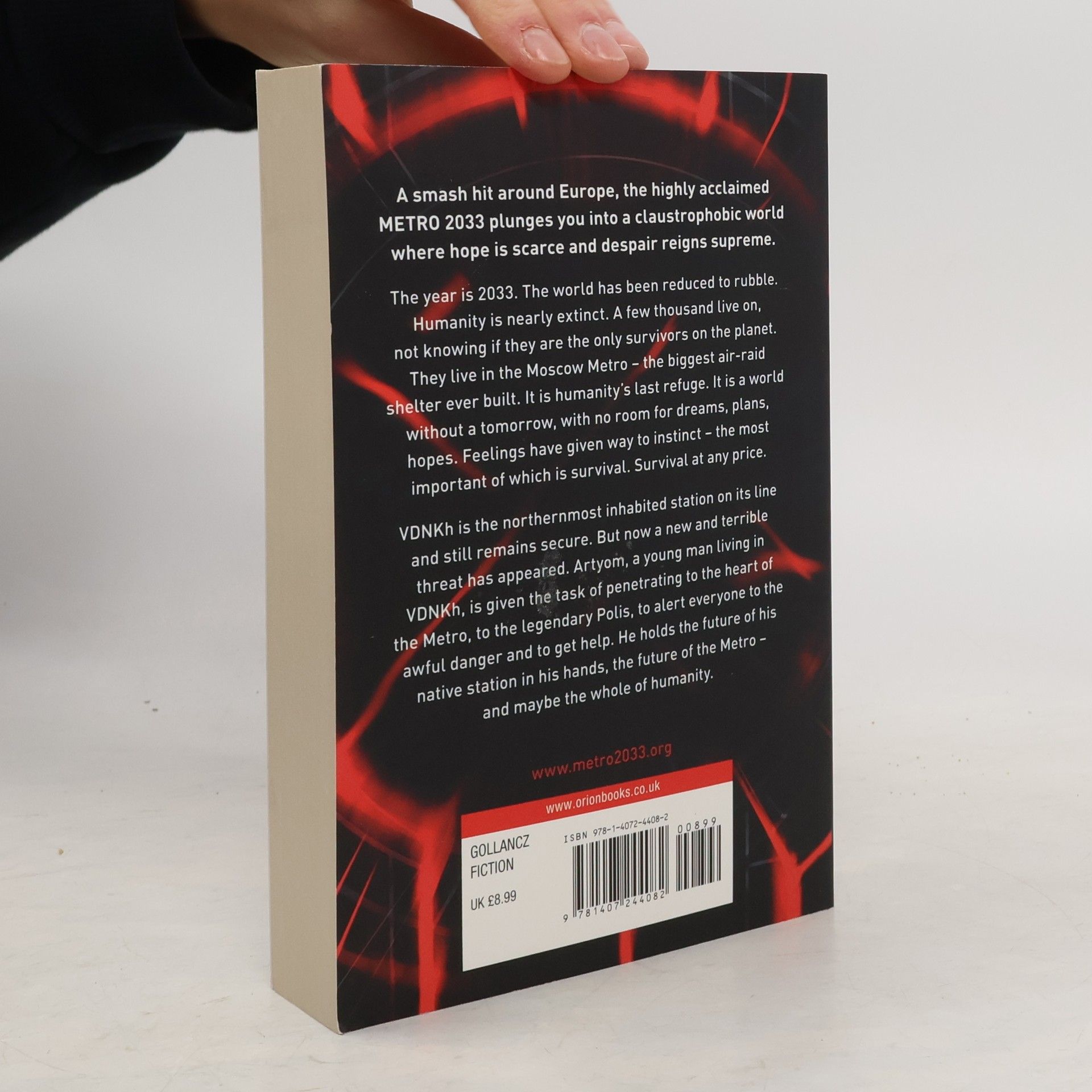 The year is 2033. The world has been reduced to rubble. Humanity is nearly extinct. A few thousand live on, not knowing if there are survivors on the planet. They live in the Moscow Metro - the biggest air-raid shelter ever built. It is humanity's last refuge. It is a world without a tomorrow, with no room for dreams, plans, hopes. Feelings have given way to instinct - the most important of which is survival. Survival at any price. VDNKh is the northernmost inhabited station on its line and still remains secure. But now a new and terrible threat has appeared. Artyom, a young man living in VDNKh, is given the task of penetrating to the heart of the Metro, to the legendary Polis, to alert everyone to the awful danger and to get help. He holds the future of his native station in his hands, the future of the Metro - and maybe the whole of humanity.