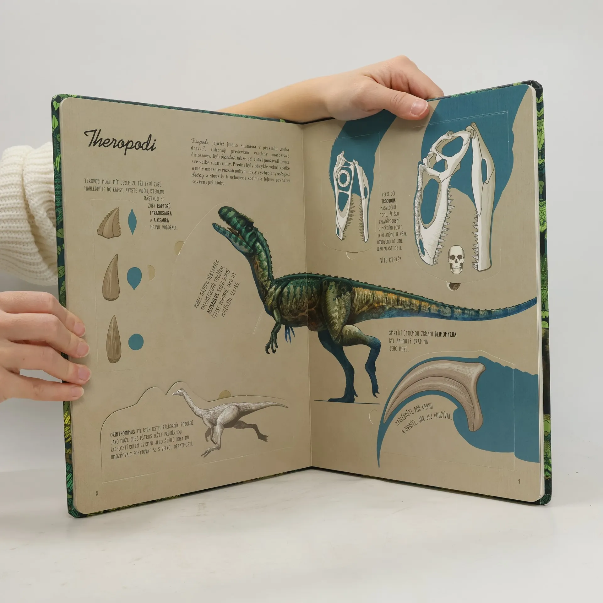 Dinosauři co nevidět vyskočí ze stránek knihy a odhalí ti svá nejúžasnější tajemství. Stačí otevřít okénko a uvidíš! Dinosaury miluje každý a teď se o nich můžeš dozvědět víc – o jejich kůži, kostech, zubech a dalších legendárních rysech. Důkladně prostuduj ty nejoblíbenější druhy včetně Tyrannosaura rexe, triceratopse, Poznej parasaurolofa a jeho hlasové nadání nebo maiasaury, takzvané "dobré matky". Každý dinosaurus je vyobrazený vedle postavy člověka, aby si čtenář udělal obrázek o jeho velikosti.
