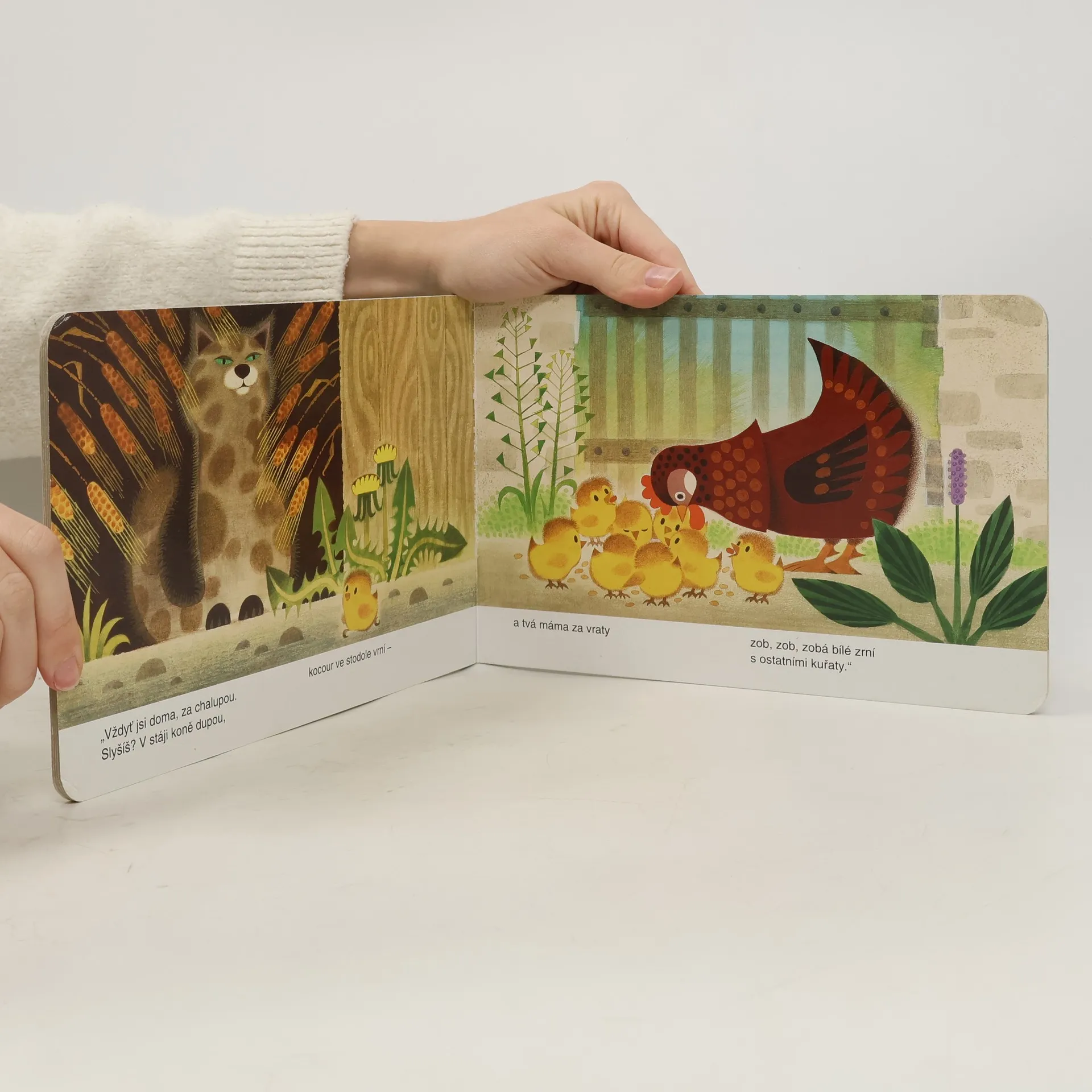 Krátká veršovaná pohádka s barevnými obrázky o malém kuřátku, které se ztratilo v poli a vyptává se obilí na cestu domů. - Pohádka učí nejmenší děti rozeznávat různé druhy obilí.
