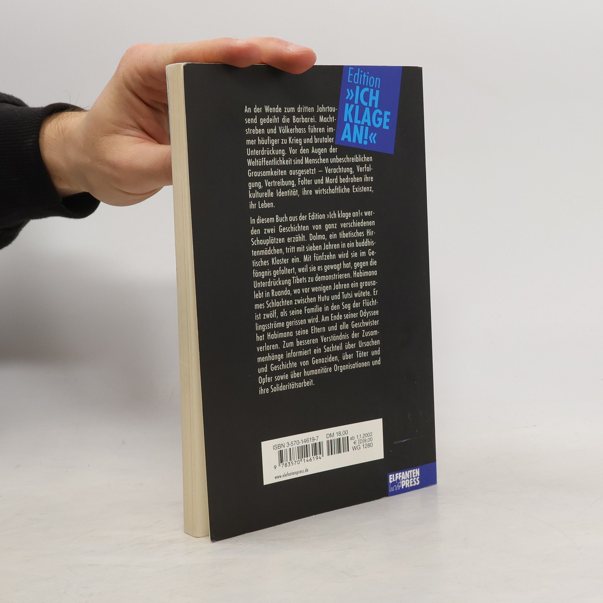 Die Tibeter sind heute eine Minderheit in ihrem eigenen Land, seit China vor 41 Jahren beschloss, Tibet zu annektieren. Die Geschichte folgt dem Mädchen Dolma, das mit sieben Jahren in ein tibetisches Kloster eintritt und sich weigert, ihre kulturelle Identität aufzugeben. Mit fünfzehn wird sie ins Gefängnis gebracht und gefoltert, weil sie gegen die Besatzer demonstriert hat. Gleichzeitig, tausende Kilometer entfernt in Ruanda, wütete ein grausamer Konflikt zwischen Hutu und Tutsi, der Hunderttausende das Leben kostete und viele zur Flucht zwang. Der zwölfjährige Habimana verliert seine Familie während der Flucht zwischen Flüchtlingslagern. Am Ende des 20. Jahrhunderts nimmt die Barbarei zu; Kriege werden häufiger und zielen zunehmend auf Zivilisten ab. Neun von zehn Opfern sind Zivilisten, und jedes zweite Opfer ist ein Kind. Moderne Waffen machen aus Kindersoldaten gefährliche Kämpfer. Wo Unmenschlichkeit und Technologie aufeinandertreffen, verschwinden moralische Werte. Ein informativer Sachteil beleuchtet die Ursachen und die Geschichte von Genoziden, die Rolle der Täter und Opfer sowie den Einfluss westlicher Länder, die oft durch Waffenlieferungen die Machthaber unterstützen.