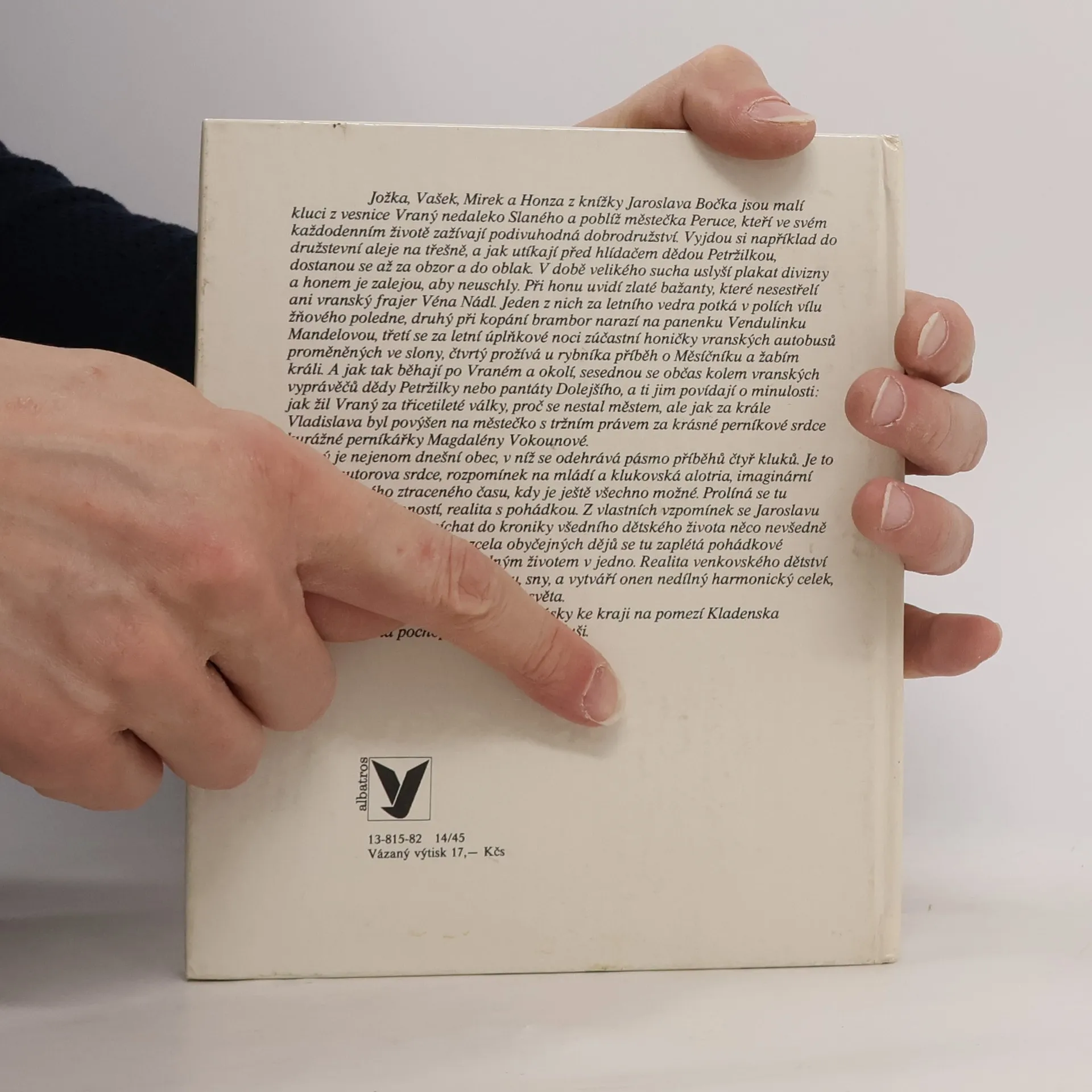 Novela vypráví příběhy čtyř kluků - Jožky, Vaška, Mirka a Honzy - z vesnice Vraný nedaleko Slaného poblíž městečka Peruce, do jejichž her, zábav a drobných dobrodružství se prolíná dávná místní minulost a pohádkové dění. Vyjdou si například do družstevní aleje na třešně a musí utíkat před dědou Petržilkou, v době největšího sucha hledají houby a slyší plakat divizny a občas se sesednou kolem vranských vypravěčů a poslouchají vyprávění. 13-815-82