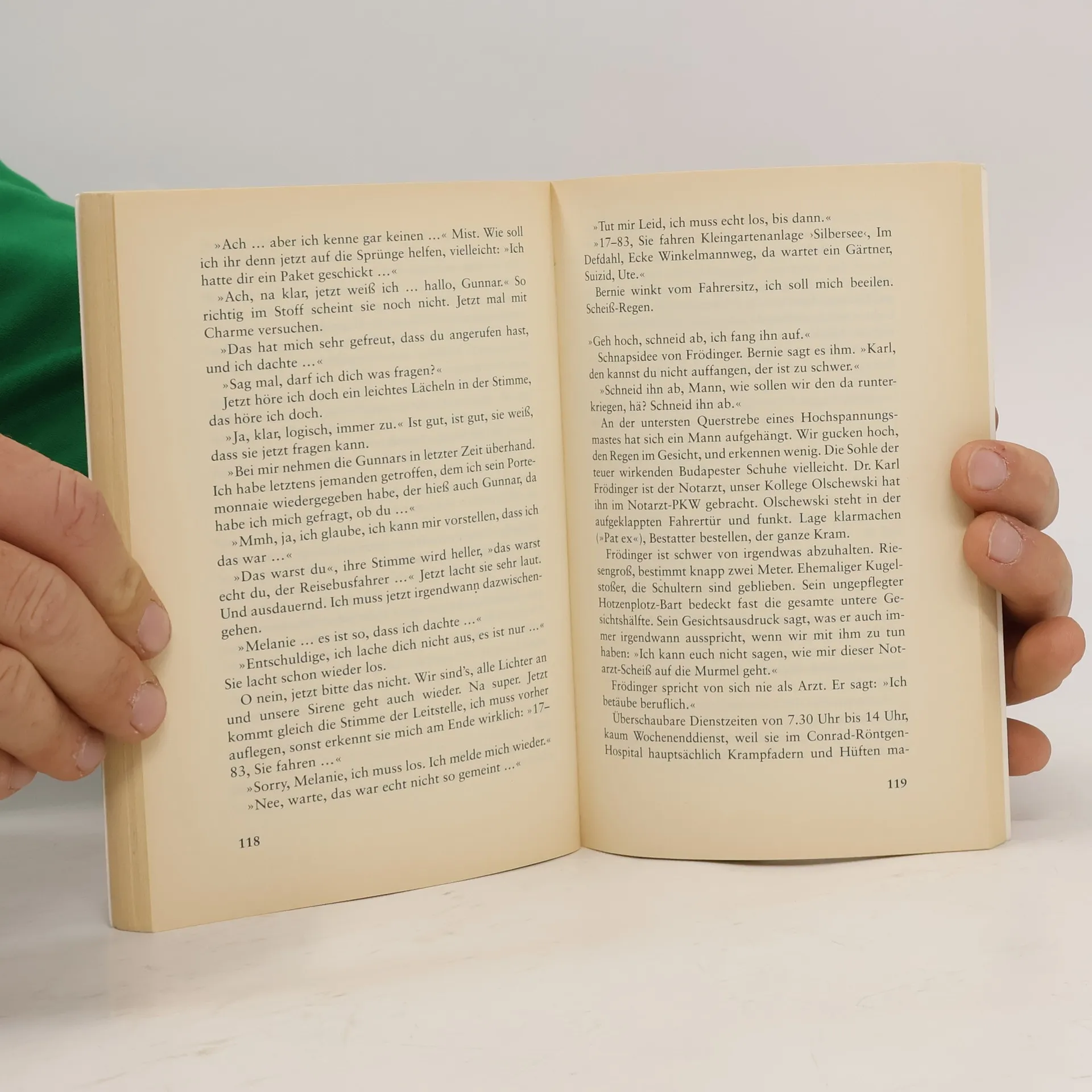 Ein außergewöhnlich schlechter Anfang ... Gunnar ist knapp 30 und hat sich in der ungemein behaglichen Männergesellschaft des Rettungsdienstes ganz gut eingerichtet, einer Welt aus groben Witzen, aber auch des solidarischen Bewusstseins gemeinsamen Strauchelns. Jeden Morgen beginnen sie ihre Schicht mit einem Blick auf die Todesanzeigen, die sie nur die »Reklamationen« nennen. Die Rettungswagenfahrer begegnen dem alten Mann, der den ganzen Tag in Großküchentöpfen Fleisch vom Knochen kocht, um es anschließend auf unzählige Näpfe zu verteilen. Die Hunde, die dieses Fleisch eigentlich fressen sollen, gibt es allerdings nur in seiner Phantasie. Weil seine Frau den Geruch nicht mehr aushalten kann, ruft sie die »112« an und damit überforderte Sanitäter ins Haus. So geht es Tag ein, Tag aus, und zwischen den mal absurden, mal skurrilen Einsätzen passiert ES. Während sein Kollege und er sich erfolglos bemühen eine Frau wiederzubeleben, verliebt sich Gunnar in die verzweifelt am Rand stehende Tochter. Aber wie nun eine Frau ansprechen, deren Mutter gerade gestorben ist? Wann kann er sie anrufen – sind drei bis fünf Tage genug? Und dann »Hallo, wir haben uns beim Tod deiner Mutter kennen gelernt. Sollen wir mal Eis essen gehen?«