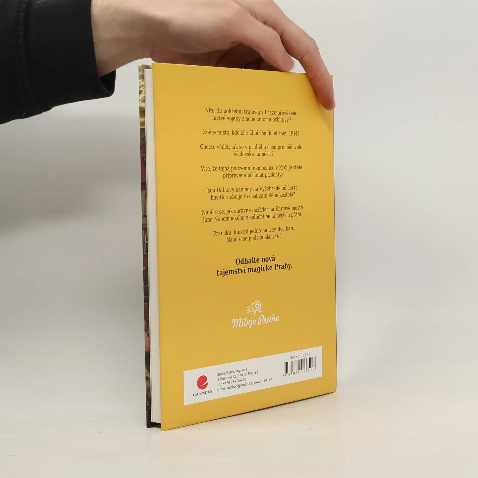 Odhalte nová tajemství magické Prahy! Praha je nejen stověžatá, ale také plná tajemství a zázraků. Autor David Černý v nové knize odhalí další zajímavosti z naší metropole. Projeďte se spolu s ním pohřební pražskou tramvají. Najděte první dopravní značku v Praze a seznamte se s úhořem Pepíkem, který už dlouhá léta žije v kašně pojišťovny ve Spálené ulici. Můžete také nahlédnout do koupelny Jana Masaryka a do podzemní nemocnice v Krči. Naučíte se, jak správně požádat o zázrak u sochy Jana Nepomuckého na Karlově mostě. Dozvíte se také, kde hledat ďáblovy kameny. Další nebudeme prozrazovat, ale můžete se těšit na Nová tajemství Prahy. Kniha je pokračováním knihy 25 tajemství Prahy, která vyšla v roce 2018 a stala se bestsellerem. Novinář, historik a fotograf, autor knihy 25 tajemství Prahy a Nová tajemství Prahy, tvůrce projektu Miluju Prahu David Černý pochází ze staré pražské pekařské rodiny. Studoval historii a celý život o Praze píše. Svou lásku k hlavnímu městu chtěl však sdílet i s ostatními, a tak si založil stránku Miluju Prahu. Zpočátku publikoval jen své oblíbené fotky Prahy, stránka se však rozrostla už na 100 tisíc fanoušků a spousty lidí dnes nadšeně posílají své vlastní fotky. David stále žije na Starém Městě nedaleko Staroměstského náměstí.