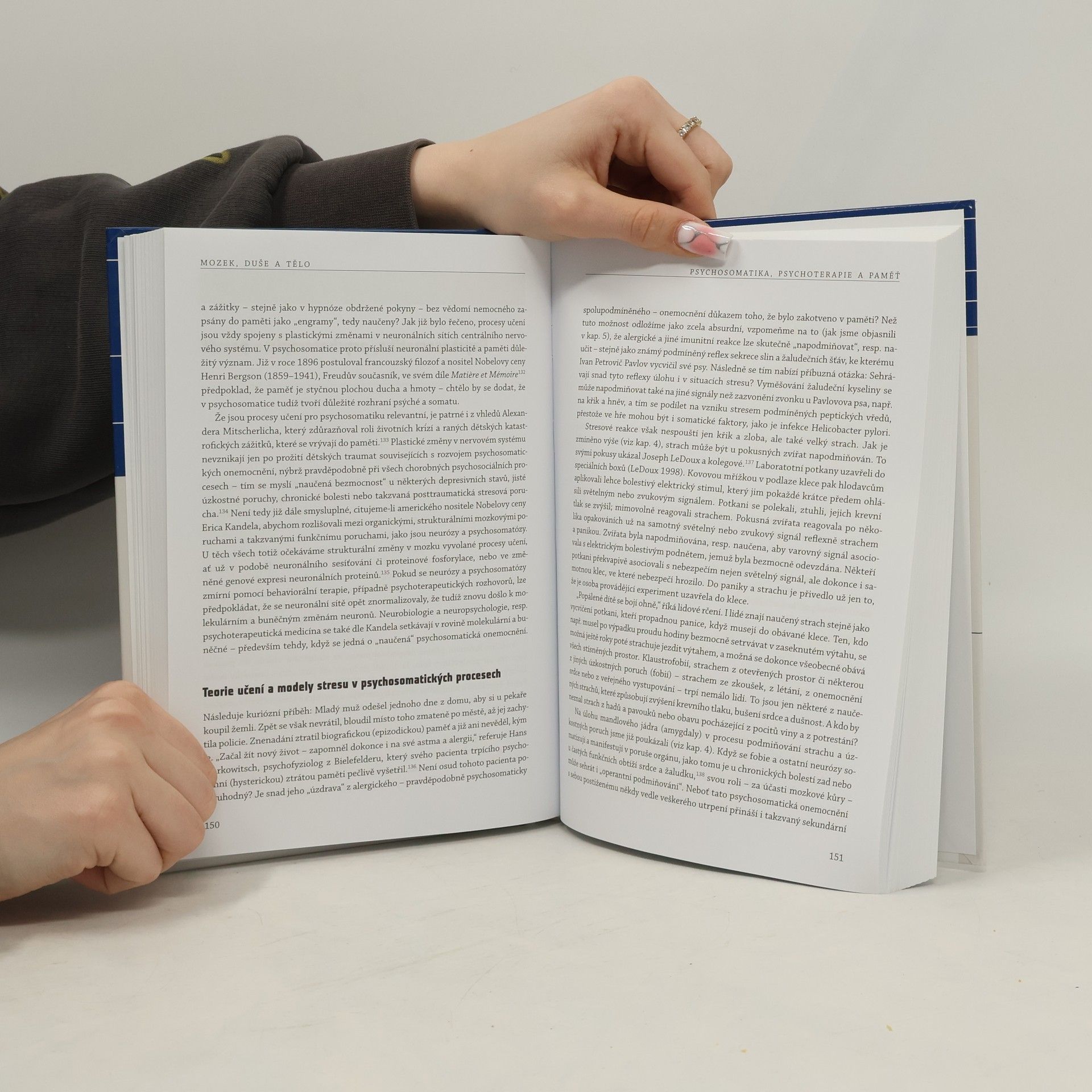 To, že strukturální změny v mozku, např. po zranění nebo při degenerativním onemocnění, ovlivňují naše chování, vědí vědci již poměrně dlouho. Ale jak naopak mozkovou strukturu ovlivňují zkušenosti s bolestí, strachem, depresí či dětskými traumaty? Jakým způsobem mají změny vztahů nebo proces psychoterapie či psychosomatické medicíny za následek neuronální restrukturalizaci? A jak může mozek a psychika ovlivnit zdraví našeho těla, zejména funkci srdce a krevního oběhu, funkci obranyschopnosti organismu proti infekcím a malignitám či funkci žláz s vnitřní sekrecí? Těmto a podobným otázkám složitých interakcí psychických a tělesných procesů se věnuje právě tato publikace. Vědecky fundovaná kniha, která v němčině vyšla již v pátém, aktualizovaném a rozšířeném vydání, začíná každé téma od skutečně základních poznatků, takže všechny neurofyziologické a biochemické pochody a jejich vztah k behaviorálním jevům a psychosomatickým poruchám je snadno pochopitelný a srozumitelný. Kniha je věnovaná aktuálním psychosomatickým oblastem: chronické bolesti, kardiovaskulárnímu systému, psychoendokrinologii a stresu, imunitnímu systému, vztahu neuronální plasticity a psychoterapie.