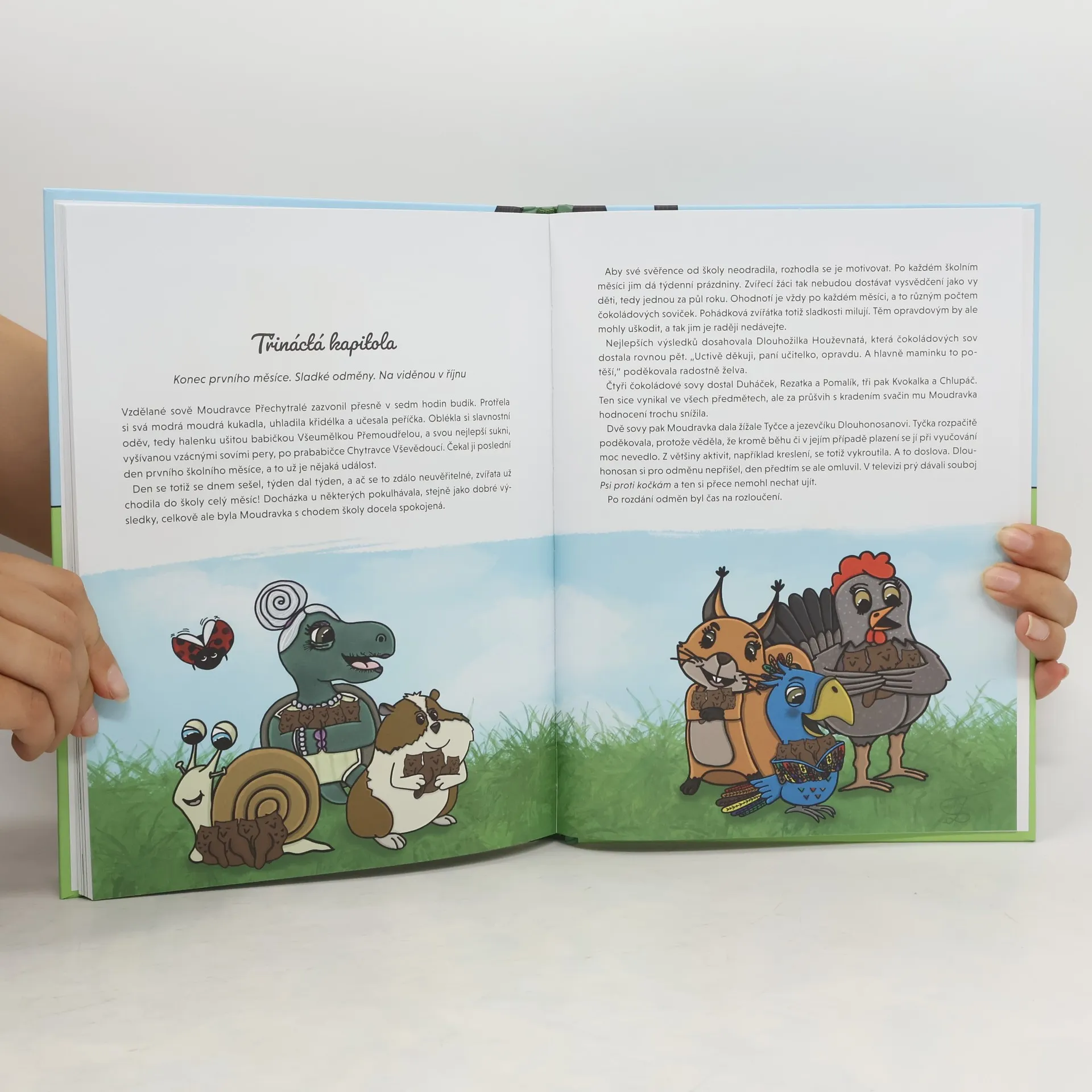 Víte, proč kočka vyniká v matematice a papouškovi nejde kotrmelec? Chcete zjistit, proč křeček krade svačiny a žížala málem propadne z kreslení? V lavicích Zvířecí školy sedává mnoho dalších žáků – třeba nesmělá želva, rošťácký jezevčík či roztržitá slepička. Každý v něčem pokulhává, v jiném zase vyniká a dohromady tvoří úžasně fungující partu. Ve Zvířecí škole najde sebe a své kamarády každý čtenář od pěti let. Kniha děti hravě, s vtipem a nenásilnou formou naučí toleranci a respektu k jakkoliv odlišným spolužákům. A ukáže jim, že být „jiný“ znamená být jedinečný.