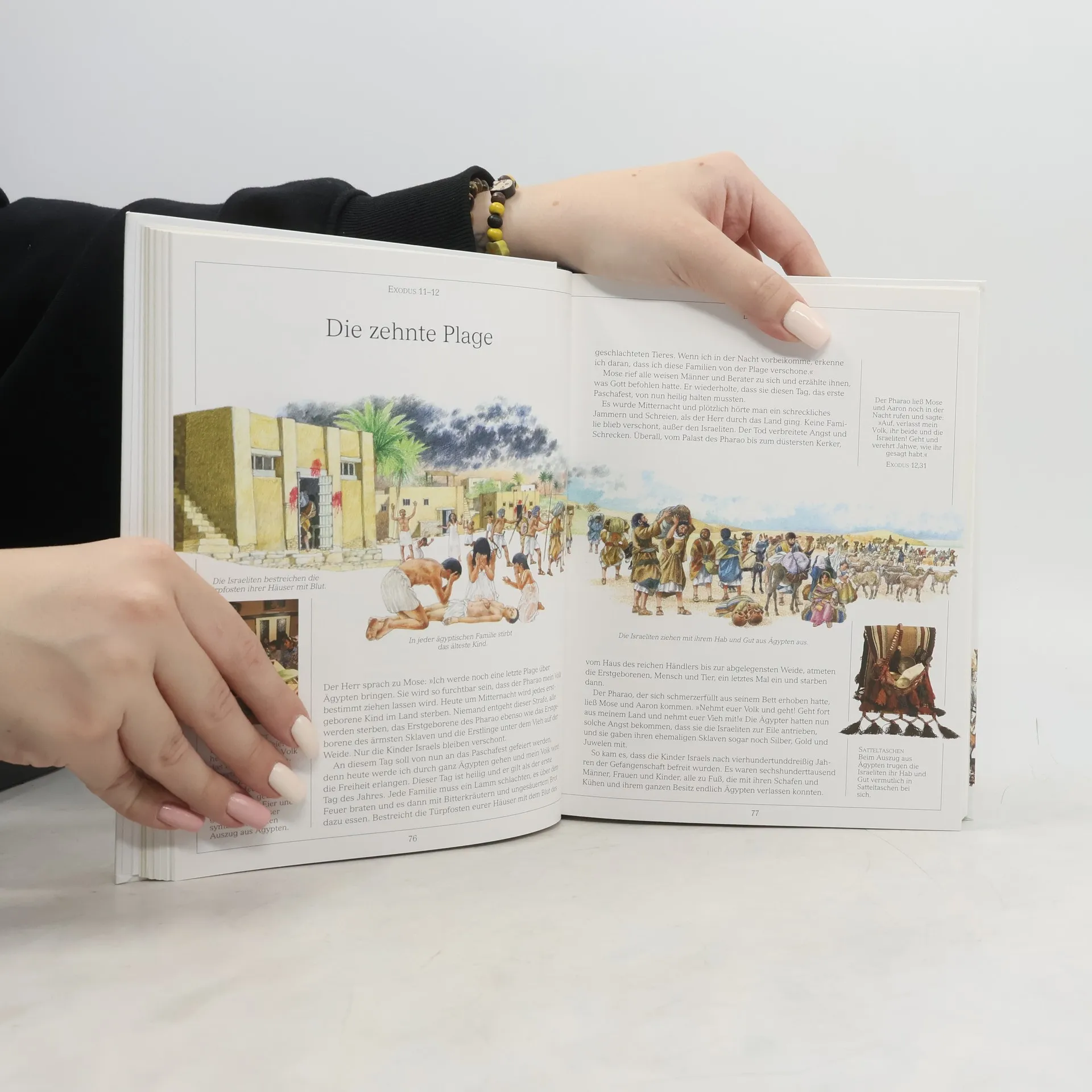 Die großen Geschichten der Bibel - für Kinder erzählt - Aufwendig und liebevoll illustrierte Kinderbibel für Kinder ab 7 Jahren - 137 Geschichten des Alten und Neuen Testaments mit vielen Hintergrundinformationen in Text und Bild - Kurze Kapitel, lebendige Sprache: ideal zum Vorlesen und für Erstleser*innen - Eine der weltweit beliebtesten illustrierten Bibeln - Wunderbares Geschenk zu Ostern oder zur Kommunion Hier wird der biblische Orient lebendig Von Adam und Eva bis zur Arche Noah, von der Weihnachtsgeschichte bis zum Leben der Apostel – diese Kinderbibel macht die Geschichten des Alten und Neuen Testaments für Kinder zur spannenden Lektüre . Faszinierende, realitätsnahe Illustrationen vermitteln eine lebendige Vorstellung von der Welt des biblischen Orients. Fotos von Pflanzen, Tieren, Kleidung oder Speisen schlagen die Brücke zur Gegenwart. Fragen wie „Was ist ein Pharao?“ oder „Mit welchem Spielzeug spielten Kinder zur Zeit Jesu?“ werden altersgerecht erklärt. Übersichtskarten der biblischen Länder und kurze Einführungstexte bieten eine Fülle von Hintergrundwissen und helfen Kindern wie Erwachsenen, die Bibel besser zu verstehen. Wunderschöne Bilder, lebendige Geschichten und viel Hintergrundwissen – die illustrierte Kinderbibel ist das ideale Geschenk zu Ostern oder zur Kommunion.