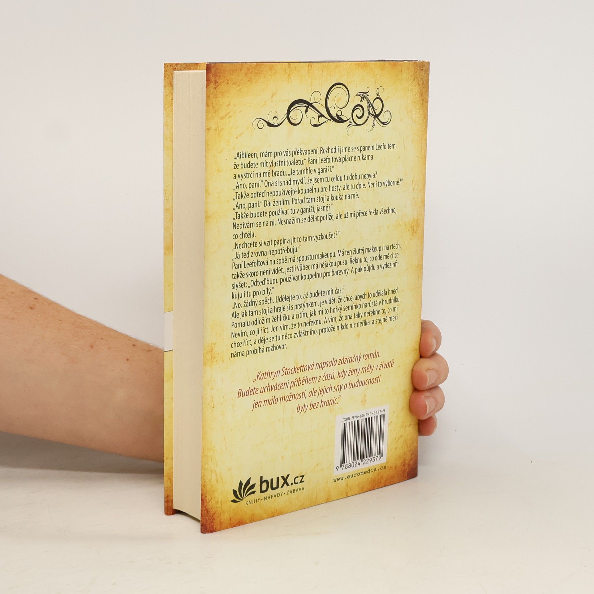 Společenský román a jedna z nejúspěšnějších amerických knih posledních let. Hluboký a dojemný příběh, zasazený do 60. let 20. století na americký Jih, je vyprávěn očima tří výjimečných žen. V době panující rasové segregace se mladá běloška, slečna Skeeter, s pomocí moudré Aibileen a rázovité Minny rozhodne ukázat svět očima černých hospodyň, čímž převrátí vzhůru nohama město i způsob, jakým se na sebe dívají ženy – matky, dcery, pečovatelky, přítelkyně. Za otázkami rasismu i postavením ženy ve společnosti tkví hlubší poselství o hranicích, těch skutečných i těch, které existují v našich myslích.