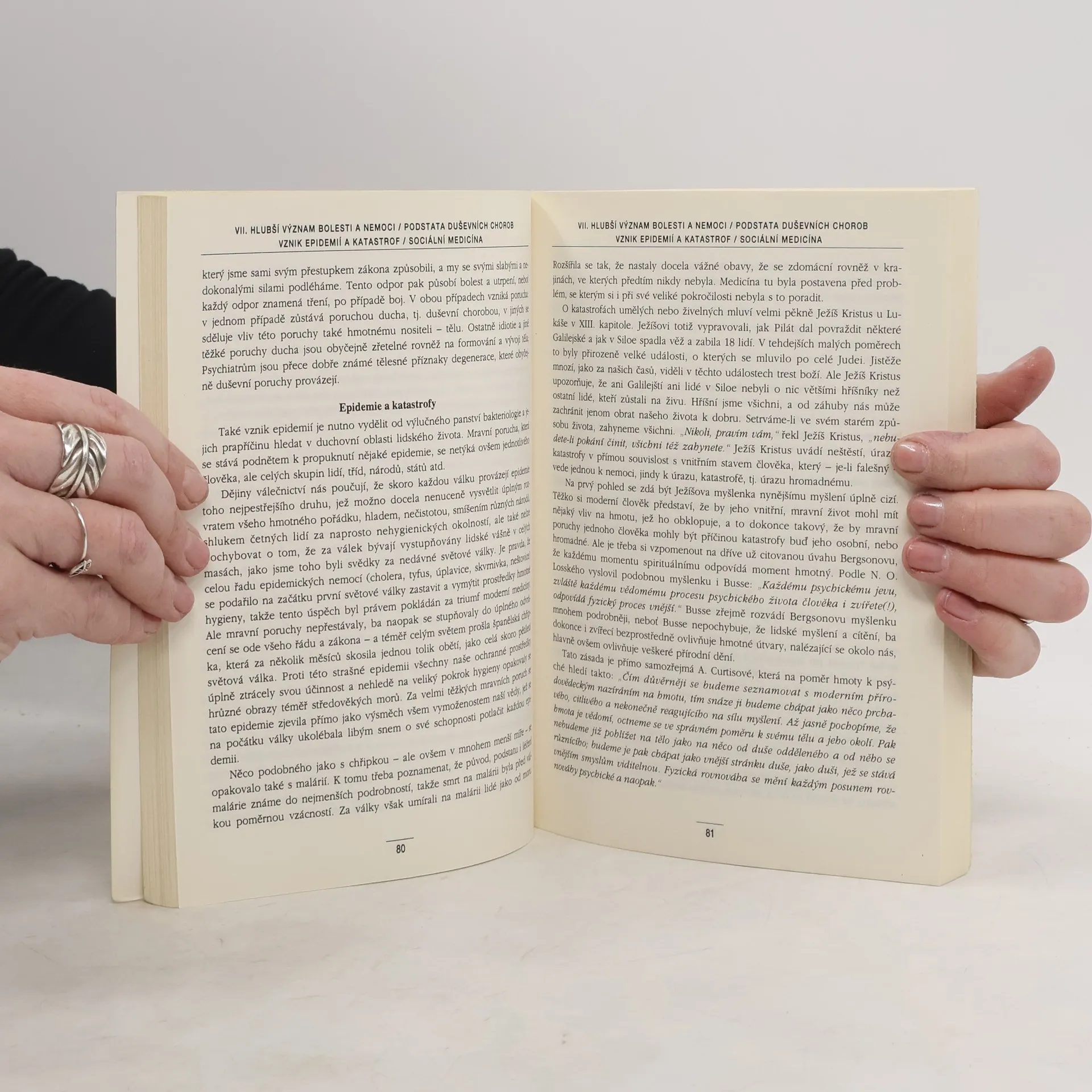 Něco z dějin medicíny. Anatomie a bakteriologie základem moderní medicíny. Přechod od anatomického k sociologickému a psychologickému pojetí medicíny. Vztah duše a duchovního prvku k hmotnému tělu. Autonomní nervový systém. Nesprávný poměr člověka k přírodě a vesmíru Hlubší význam bolesti a nemoci. Myšlenky současné léčby a etikoterapie Sugesce jako součást terapie. Magnetismus, psychoterapie,vůle a tělovýchova jako léčebné prostředky. Vztah mravních zásad k hygieně a terapii. Metody etikoterapie a etikoprevence. Cesta k vlastní duši a jejím prostřednictvím k tělu. Lékař knězem - vnitřní význam nemoci. Závislost člověka na poměru jeho duše k vlastnímu tělu, k bližnímu a k Bohu. Jak lidé umírají. Podstata smrti.