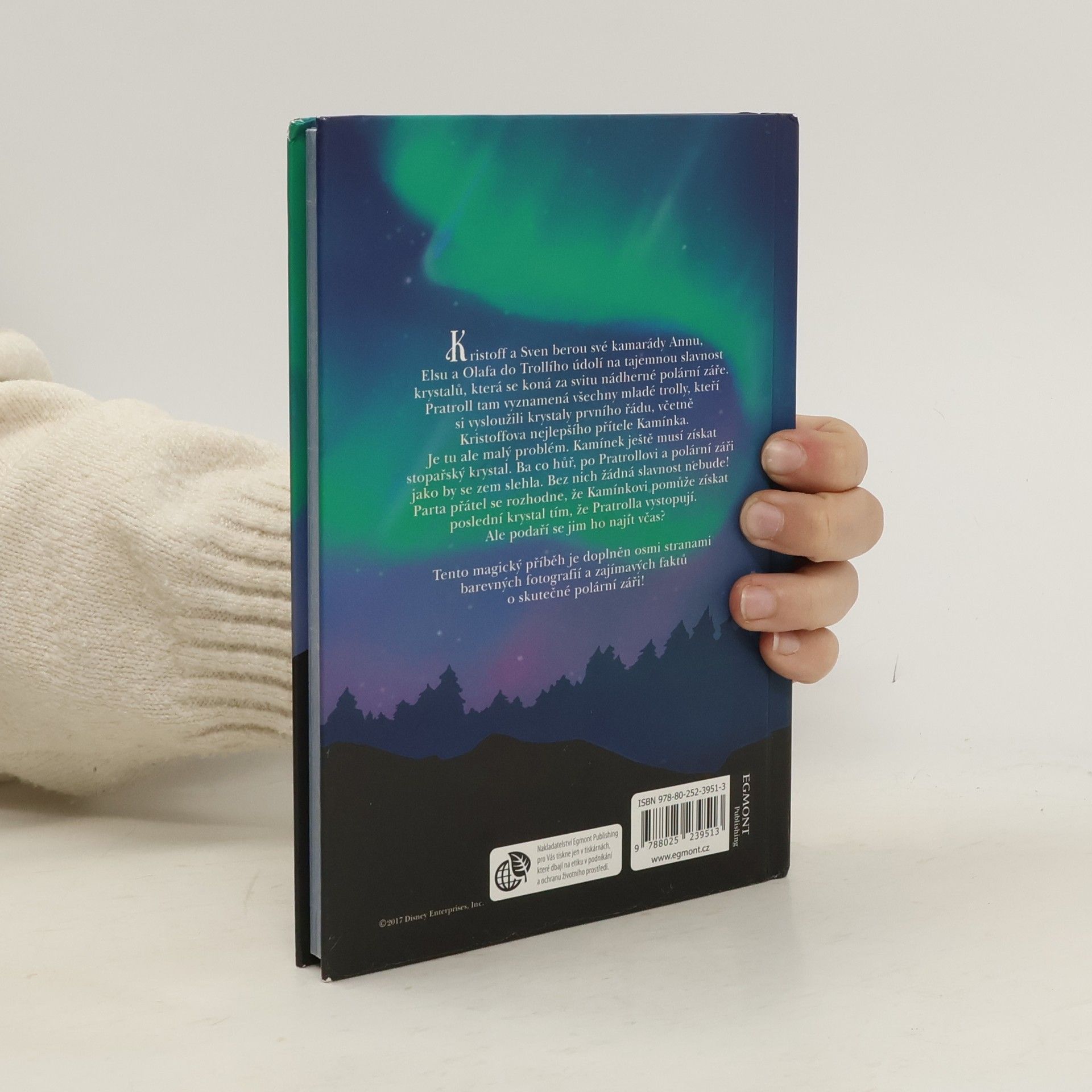 Kristoff bere Annu, Elsu a Olafa do Trollího údolí na tajemnou slavnost krystalů, která se koná za svitu polární záře. Pratroll při ní vyznamená mladé trolly, kteří si vysloužili krystaly za splnění trollích dovedností. Mezi mladými je i Kamínek. Jenomže mu chybí poslední, stopařský krystal. Kamarádi se rozhodnou, že Kamínkovi pomůžou krystal získat. Podaří se jim to? Magický příběh doplňuje osm stran barevných fotografií a zajímavých faktů o skutečné polární záři.