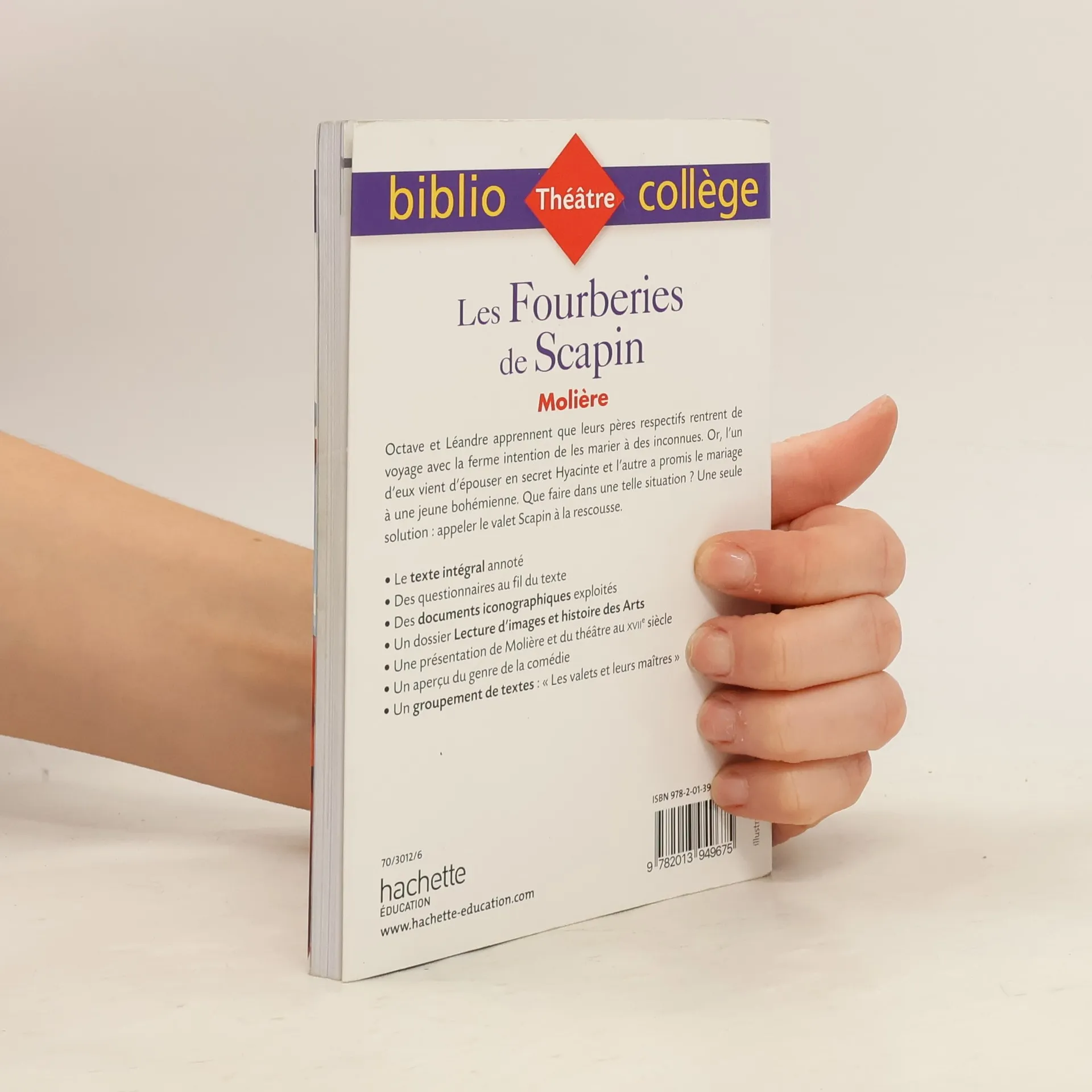 Octave et Leandre apprennent que leurs peres respectifs rentrent de voyage avec la ferme intention de les marier a des inconnues. Or, l'un d'eux vient d'epouser en secret Hyacinte et l'autre a promis le mariage a une jeune bohemienne. Que faire dans une telle situation ? Une seule solution: appeler le valet Scapin a la rescousse. - Le texte integral annote - Des questionnaires au fil du texte - Des documents iconographiques exploites - Un dossier Lecture d'images et histoire des Arts - Une presentation de Moliere et du theatre au xviie siecle - Un apercu du genre de la comedie - Un groupement de textes: Les valets et leurs maitres
