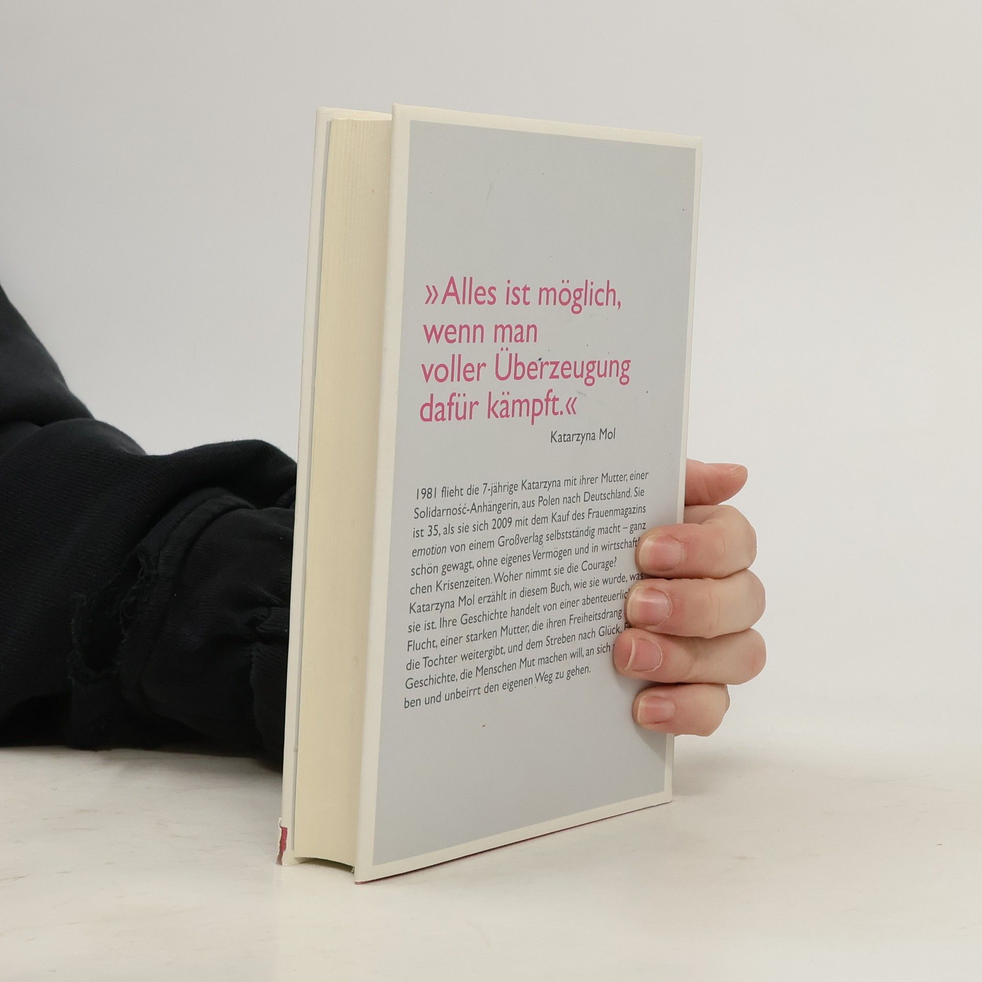 Die ungewöhnliche Karriere der EMOTION-Verlegerin 1981 flieht die 7-jährige Katarzyna mit ihrer Mutter, einer Solidarnosc-Anhängerin, aus Polen nach Deutschland. Sie ist 35, als sie sich 2009 mit dem Kauf des Frauenmagazins EMOTION selbstständig macht – ganz schön gewagt, denn sie besitzt kein eigenes Vermögen und die Zeitschriftenbranche kriselt. Woher nimmt sie die Courage? Katarzyna Mol erzählt in diesem Buch, wie sie wurde, was sie ist. Ihre Geschichte handelt von einer abenteuerlichen Flucht, einer starken Mutter, die ihren Freiheitsdrang an die Tochter weitergibt, und der festen Entschlossenheit, das Glück zu finden. Die Flucht aus Polen macht aus einer Diplom- Ingenieurin eine Putzfrau und aus einem zufriedenen kleinen Mädchen ein Flüchtlingskind. Krystyna und Katarzyna müssen in München ganz neu anfangen. Doch die Ausnahmesituation schweißt sie zusammen. Von ihrer mutigen, unabhängigen Mutter lernt Katarzyna, sich durchzubeißen. Ihre Mutter ist heute in leitender Funktion in einem medizinischen Labor mit etwa 300 Mitarbeitern tätig, Katarzyna ist Verlegerin. Katarzyna Mol schildert ihre polnische Heimat und Familie, die Schwierigkeiten des Neuanfangs in Deutschland, ihren beruflichen Werdegang und den gewagten Schritt in die Selbstständigkeit, mit dem sie ihr Glück gefunden hat. Ein Buch, das allen Mut machen will, an sich zu glauben und unbeirrt den eigenen Weg zu gehen.
