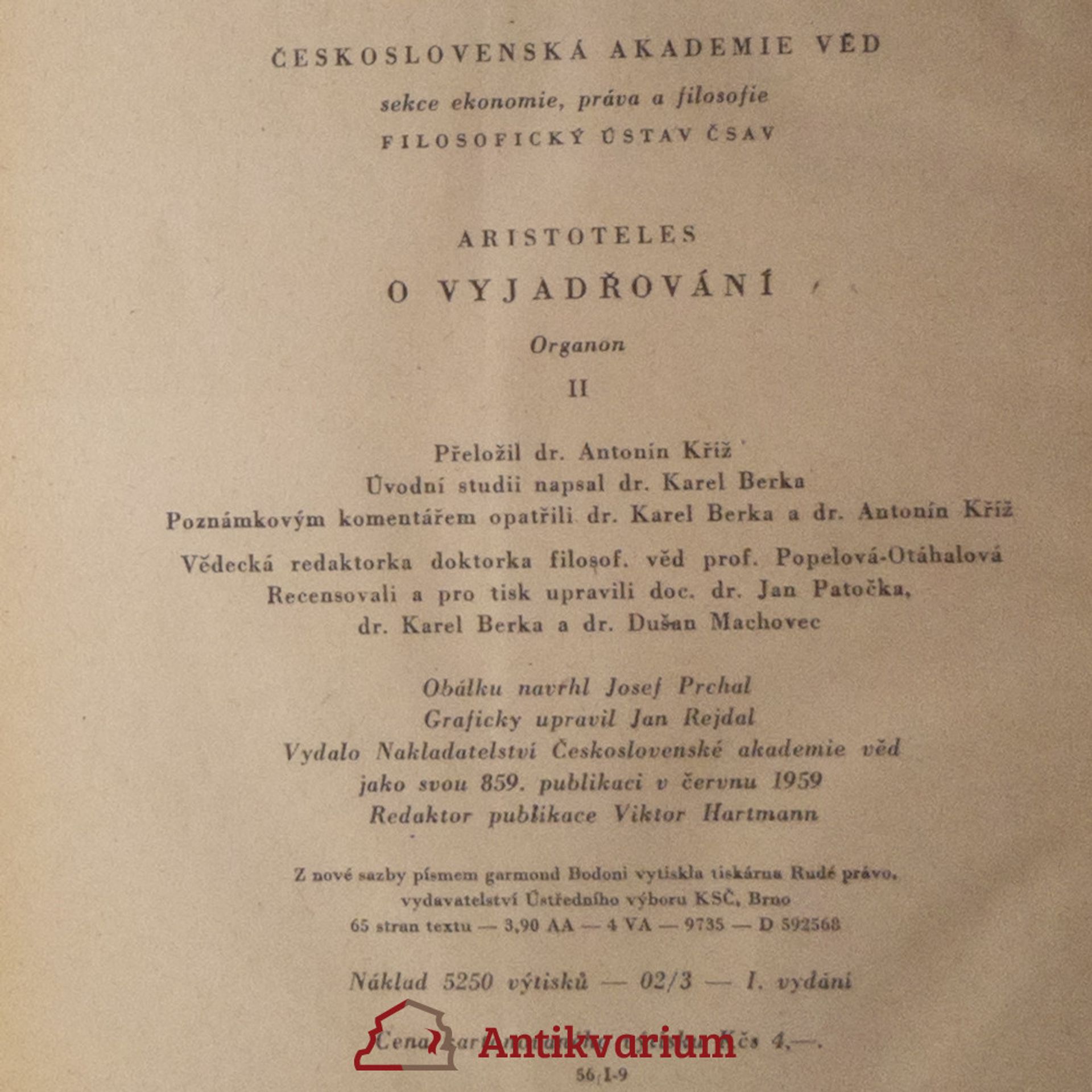 Organon. II, O vyjadřování, Aristotelés, Karel Berka, Antonín Kříž