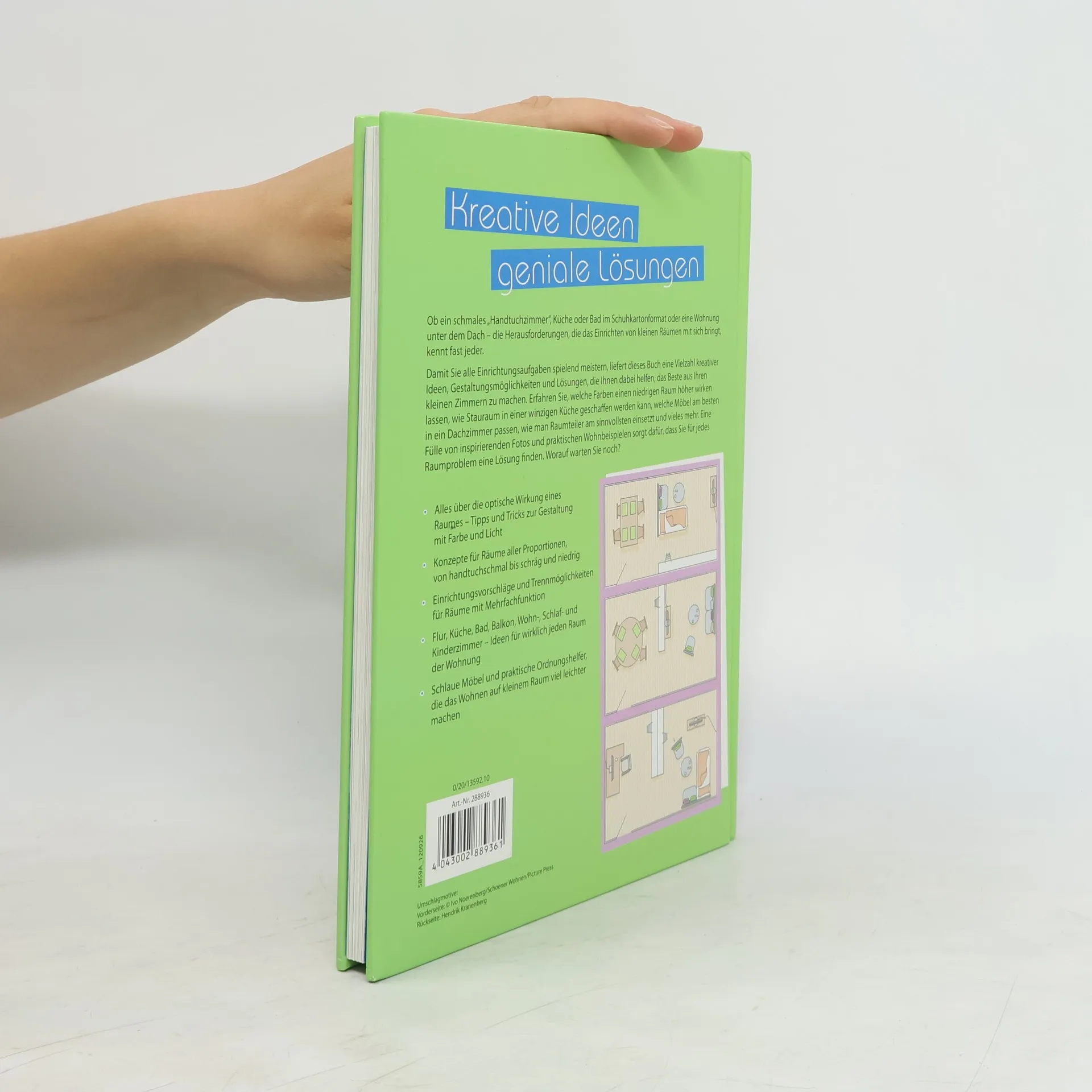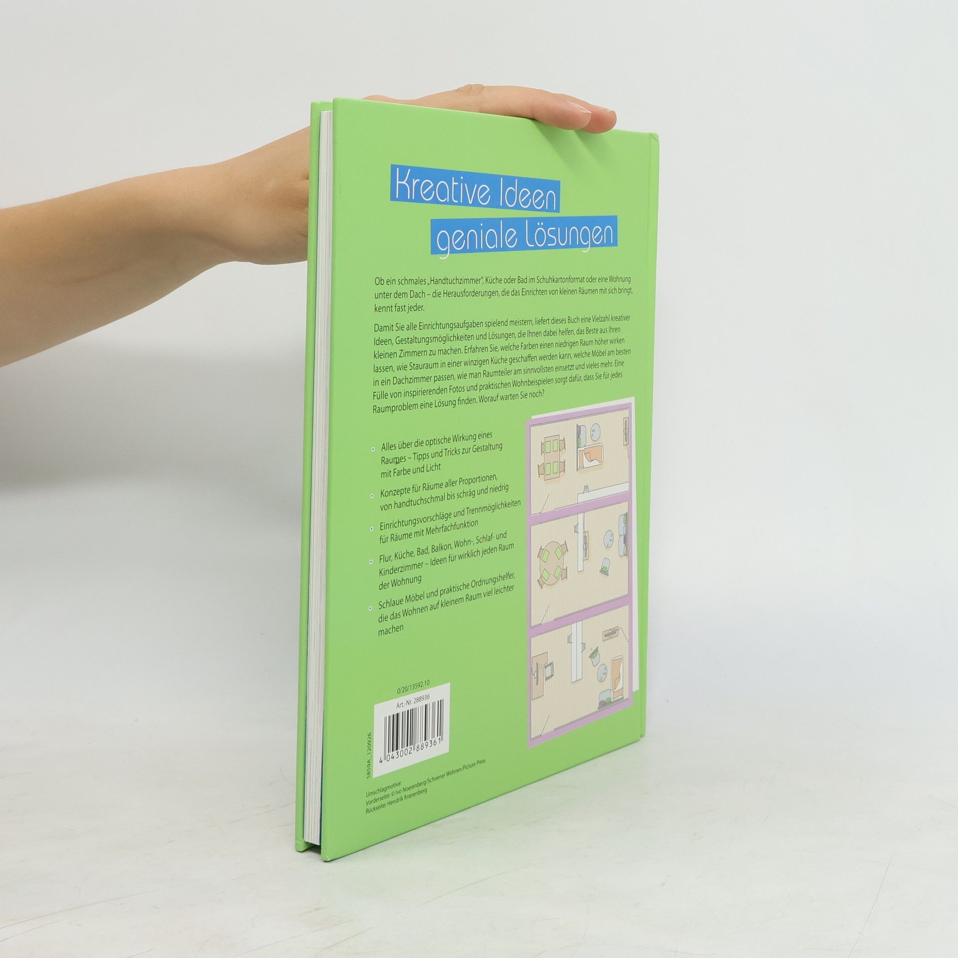 Schönstes Wohnen in jedem Raum Ob schmal wie ein Handtuch, klein und quadratisch oder mit Schrägen - mit ein paar Tricks lässt sich jedes Zimmer praktisch und vor allem dekorativ einrichten. Mit einer Vielzahl kreativer Ideen, zahlreichen Gestaltungsmöglichkeiten und vor allem praktischen Lösungen für jedes Raumproblem zeigen wir Ihnen, wie Sie alle Einrichtungsaufgaben spielend lösen. Sie erfahren, welche Farben Räume höher wirken lassen, welche Möbel am besten in eine Dachwohnung passen, wie sich Stauraum in der kleinsten Küche schaffen lässt, wie man Raumteiler am besten einsetzt und vieles, vieles mehr. Wohnen Sie perfekt - auch auf kleinstem Raum! - Reich bebilderter Ratgeber mit Raumplänen und Konzepten für Zimmer aller Proportionen - Tipps und Tricks zur Gestaltung mit Farbe und Licht - Mit Einrichtungsideen für Räume mit Mehrfachfunktion - Zahlreiche Ideen für schlaue Möbel und praktische Ordnungshelfer, die das Wohnen einfach machen