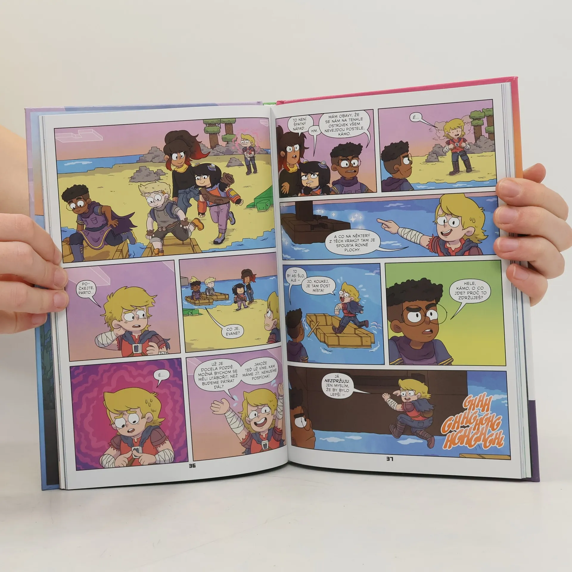Pokračování úspěšné první knihy kreslených příběhů ze světa Minecraftu! VÍTEJTE zpět ve Středosvětě, kde naše parta plánuje svou nejnovější výpravu k mořskému paláci! Ale do cesty se jim staví násilníci (ve hře i ve skutečnosti) a Evan, Tyler, Tobi, Candace a Grace musí najít způsob, jak se s nimi vypořádat! Když se po útoku pirátů ocitnou tváří v tvář ještě větší hrozbě, všichni hráči si uvědomí, že se musí naučit spoléhat jeden na druhého, aby nebezpečí překonali.