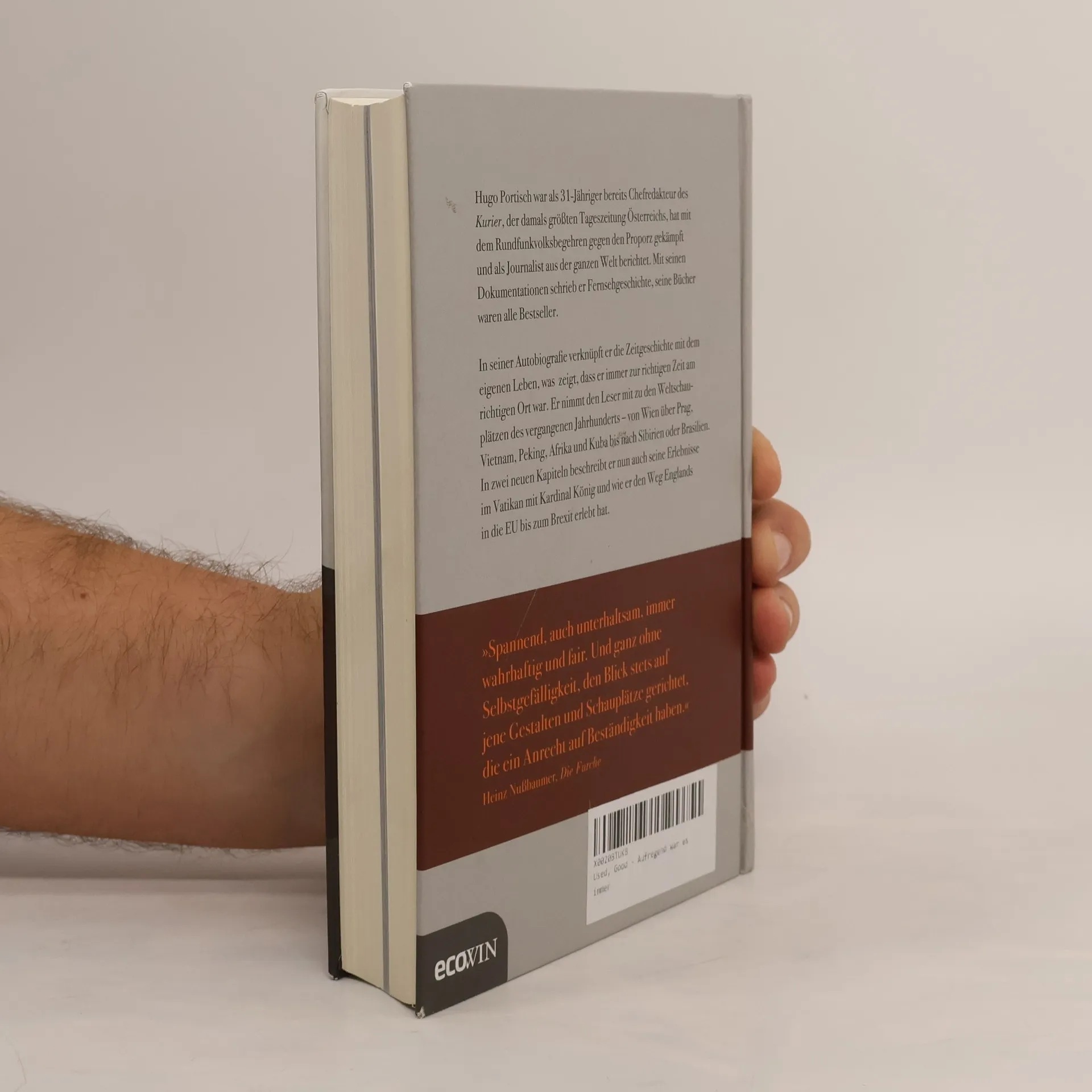 Hugo Portisch war als 31-Jähriger bereits Chefredakteur des Kurier, der damals größten Tageszeitung Österreichs, hat mit dem Rundfunkvolksbegehren gegen den Proporz gekämpft und als Journalist aus der ganzen Welt berichtet. Mit seinen Dokumentationen schrieb er Fernsehgeschichte, seine Bücher waren alle Bestseller. In seiner Autobiografie verknüpft er die Zeitgeschichte mit dem eigenen Leben, was zeigt, dass er immer zur richtigen Zeit am richtigen Ort war. Er nimmt den Leser mit zu den Weltschauplätzen des vergangenen Jahrhunderts – von Wien über Prag, Vietnam, Peking, Afrika und Kuba bis nach Sibirien oder Brasilien. In zwei neuen Kapiteln beschreibt er nun auch seine Erlebnisse im Vatikan mit Kardinal König und wie er den Weg Englands in die EU bis zum Brexit erlebt hat. »Spannend, auch unterhaltsam, immer wahrhaftig und fair. Und ganz ohne Selbstgefälligkeit, den Blick stets auf jene Gestalten und Schauplätze gerichtet, die ein Anrecht auf Beständigkeit haben.« Heinz Nußbaumer, Die Furche