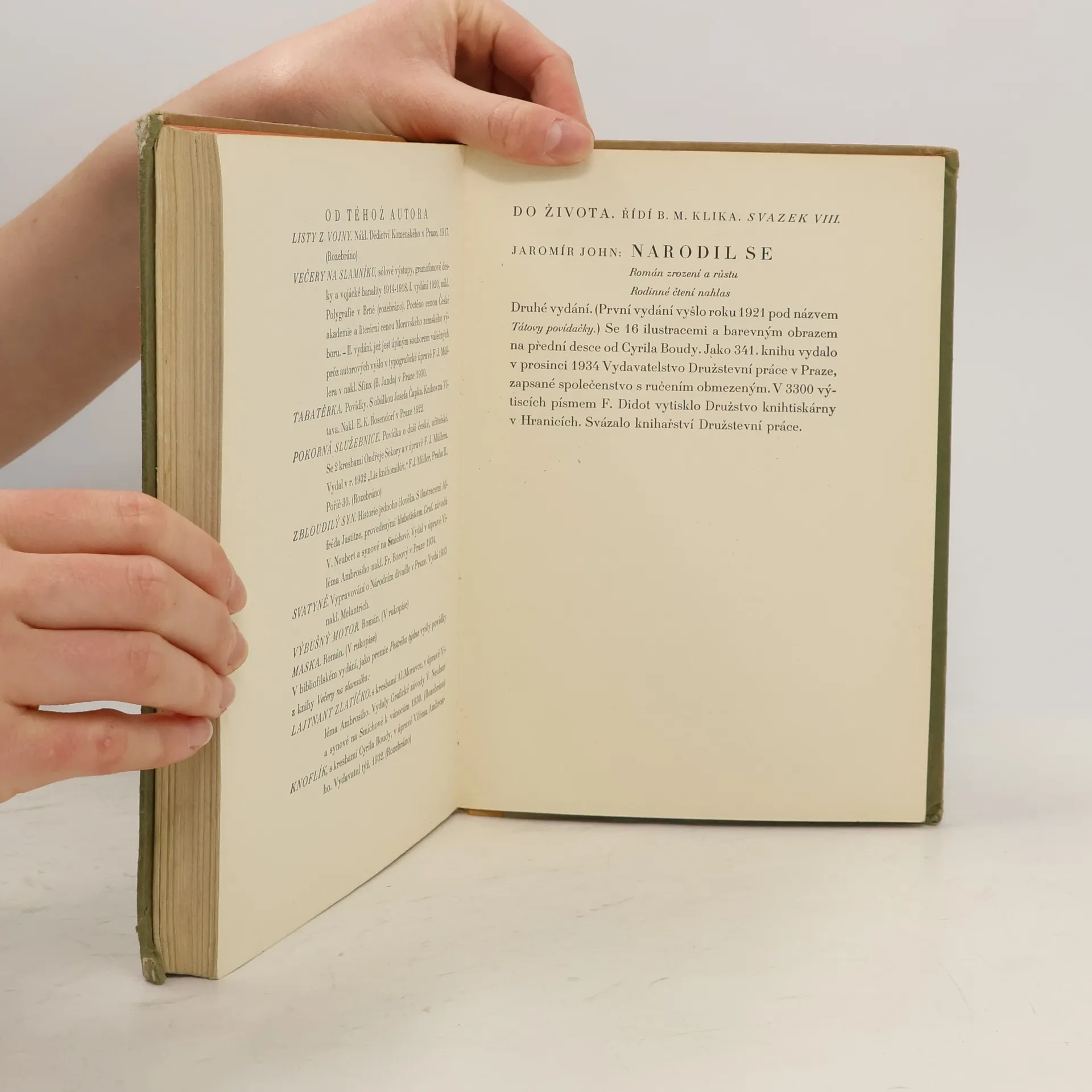 Román zrození a růstu. Druhé vydání. 1. vydání vyšlo 1921 pod názvem Tátovy povídačky.