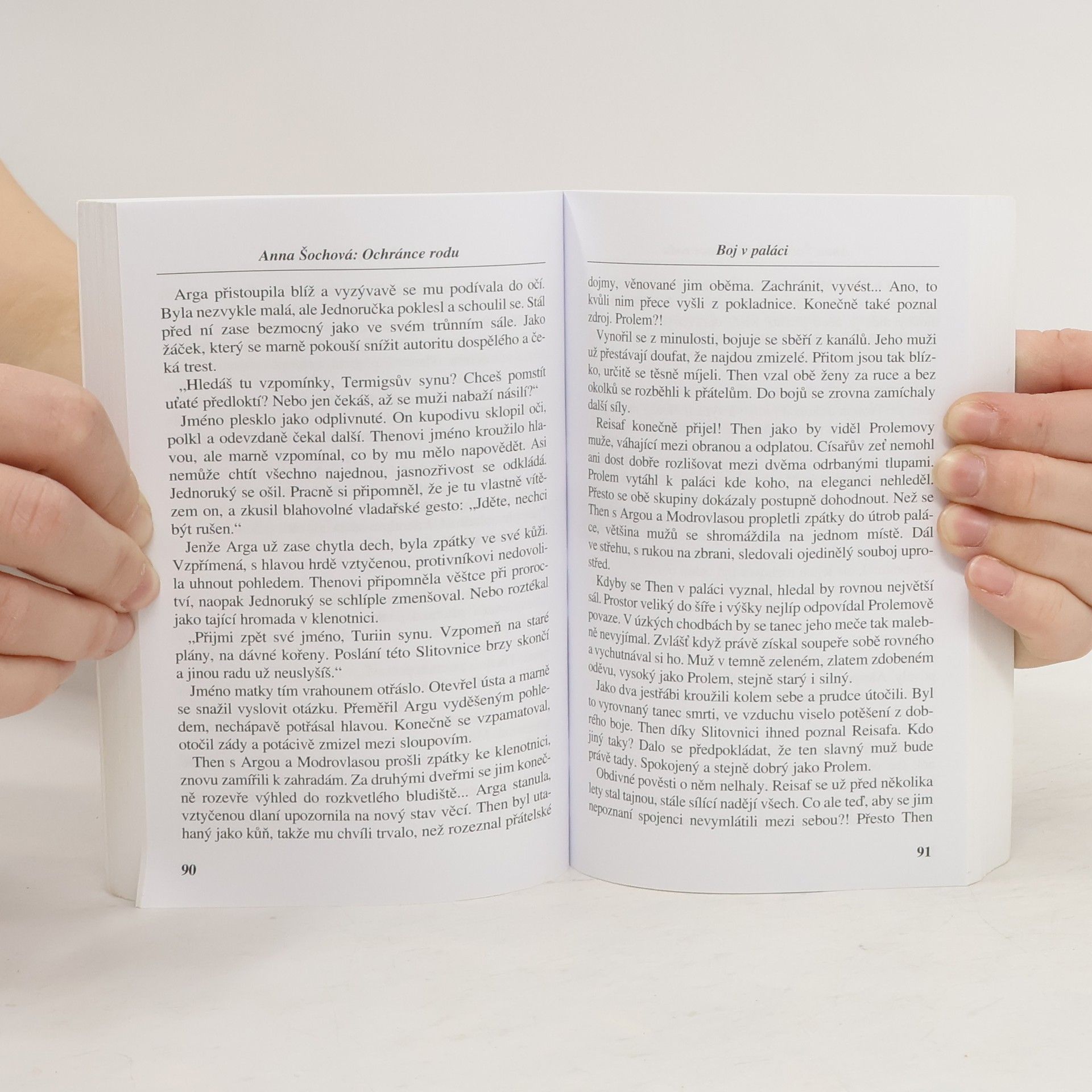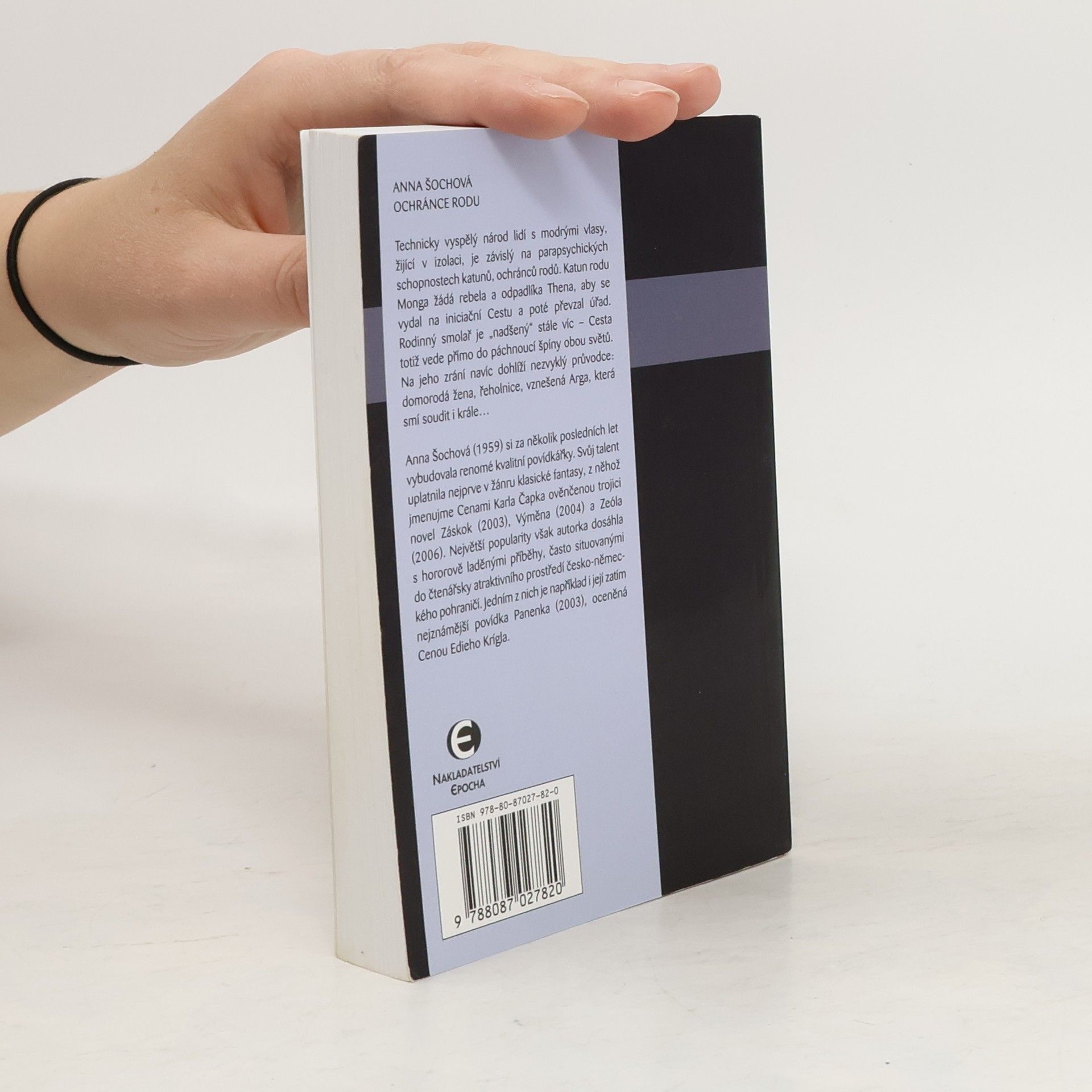 Technicky vyspělý národ lidí s modrými vlasy, žijící v izolaci, je závislý na parapsychických schopnostech katunů, ochránců rodů. Katun rodu Monga žádá rebela a odpadlíka Thena, aby se vydal na iniciační Cestu a poté převzal úřad. Rodinný smolař je „nadšený“ stále víc – Cesta totiž vede přímo do páchnoucí špíny obou světů. Na jeho zrání navíc dohlíží nezvyklý průvodce: Domorodá žena, řeholnice, vznešená Arga, která smí soudit i krále… Anna Šochová (1959) si za několik posledních let vybudovala renomé kvalitní povídkářky. Svůj talent uplatnila nejprve v žánru klasické fantasy, z něhož jmenujme Cenami Karla Čapka ověnčenou trojici novel Záskok (2003), Výměna (2004) a Zeóla (2006). Největší popularity však autorka dosáhla s hororově laděnými příběhy, často situovanými do čtenářsky atraktivního prostředí česko-německého pohraničí. Jedním z nich je například i její zatím nejznámější povídka Panenka (2003), oceněná Cenou Edieho Krígla