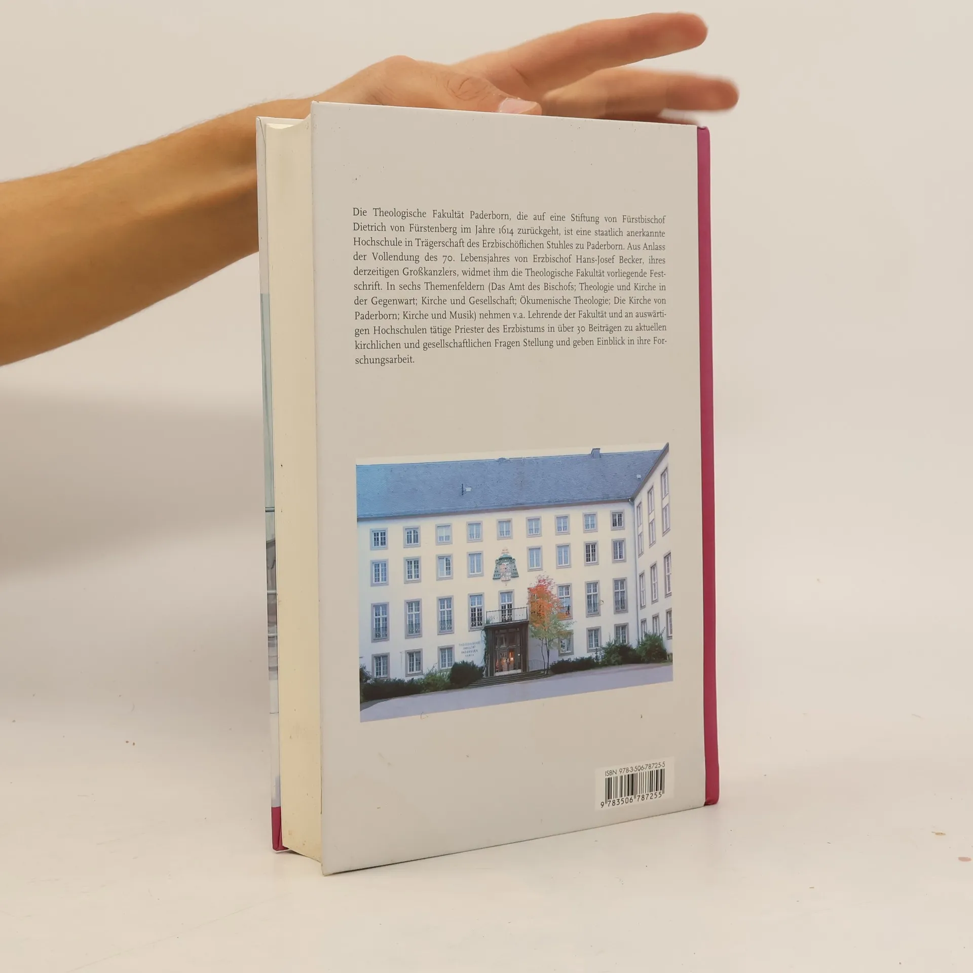 Die Theologische Fakultät Paderborn, die auf eine Stiftung von Fürstbischof Dietrich von Fürstenberg im Jahre 1614 zurückgeht, ist eine staatlich anerkannte Hochschule in Trägerschaft des Erzbischöflichen Stuhles zu Paderborn. Aus Anlass der Vollendung des 70. Lebensjahres von Erzbischof Hans-Josef Becker, ihres derzeitigen Großkanzlers, widmet ihm die Theologische Fakultät vorliegende Festschrift. In sechs Themenfeldern (Das Amt des Bischofs; Theologie und Kirche in der Gegenwart; Kirche und Gesellschaft; Ökumenische Theologie; Die Kirche von Paderborn; Kirche und Musik) nehmen u. a. Lehrende der Fakultät und an auswärtigen Hochschulen tätige Priester des Erzbistums in über 30 Beiträgen zu aktuellen kirchlichen und gesellschaftlichen Fragen Stellung und geben Einblick in ihre Forschungsarbeit.