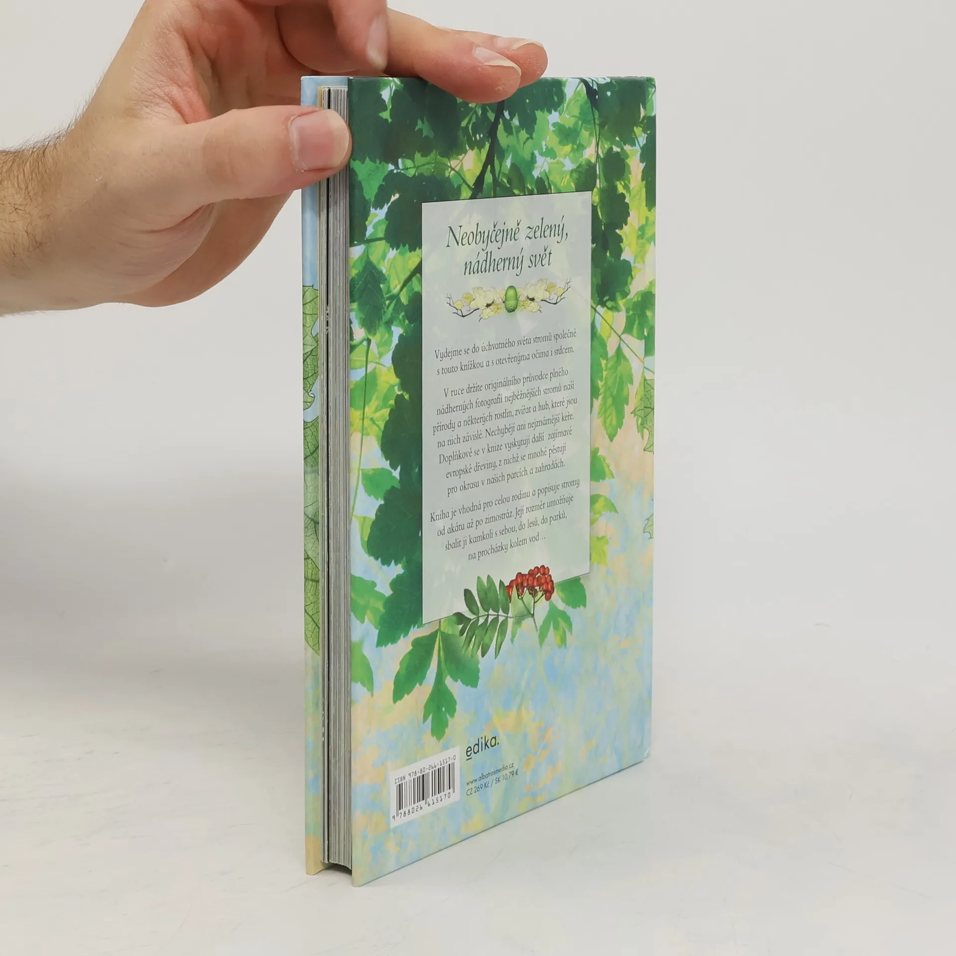 Vydejme se do úchvatného světa stromů společně s touto knížkou a s otevřenýma očima i srdcem. V ruce držíte originálního průvodce plného nádherných fotografií nejběžnějších stromů naší přírody a některých rostlin, zvířat a hub, které jsou na nich závislé. Nechybějí ani nejznámější keře. Doplňkově se v knize vyskytují další zajímavé evropské dřeviny, z nichž se mnohé pěstují pro okrasu v našich parcích a zahradách. Kniha je vhodná pro celou rodinu a popisuje stromy od akátu až po zimostráz. Její rozměr umožňuje sbalit ji kamkoli s sebou, do lesů, do parků, na procházky kolem vod…