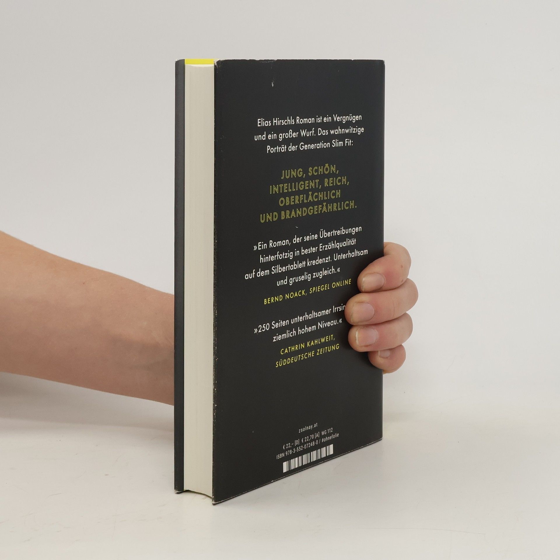 Was, wenn man sich ein perfektes Leben wie eine zweite Haut überziehen könnte? Willkommen bei Austrian Psycho Stundenlang übt er vor dem Spiegel seinen Gang, sein Lächeln, seine Art zu sprechen. Julius Varga, der Parteichef, ist das ganz große Idol des namenlosen Erzählers. „Ich gebe mich für dich auf, Julius. Ich liebe dich.“ In seiner Abwesenheit gießt er seine Zimmerpflanzen, als ob dies ein Staatsakt wäre. Auf einer unteren Ebene dient der Erzähler der Partei und eifert seinem Vorbild nach. Er ist besessen von Marken und Äußerlichkeiten und der Ästhetik von Terroranschlägen. Elias Hirschls neuer Roman ist ein großer Wurf und ein Vergnügen. Das wahnwitzige Porträt der Generation Slim Fit: jung, schön, intelligent, reich, oberflächlich und brandgefährlich.