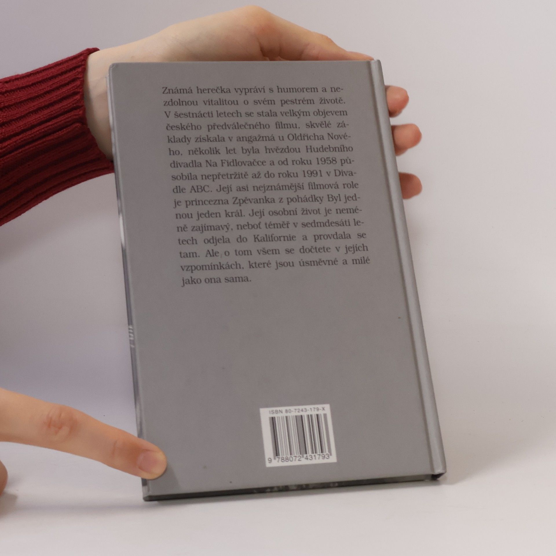 Známá herečka vypráví s humorem a nezdolnou vitalitou o svém pestrém životě. V šestnácti letech se stala velkým objevem českého předválečného filmu, skvělé základy získala v angažmá u Oldřicha Nového, několik let byla hvězdou Hudebního divadla Na Fidlovačce a od roku 1958 působila nepřetržitě až do roku 1991 v Divadle ABC. Její asi nejznámější filmová role je princezna Zpěvanka z pohádky Byl jednou jeden král, i když hrála v řadě dalších filmů. Její osobní život je neméně zajímavý, neboť téměř v sedmdesáti letech odjela do Kalifornie a provdala se tam. Ale o tom všem se dočtete v jejích vzpomínkách, které jsou úsměvné a milé jako ona sama. Vyprávění je ilustrováno množstvím fotografií.